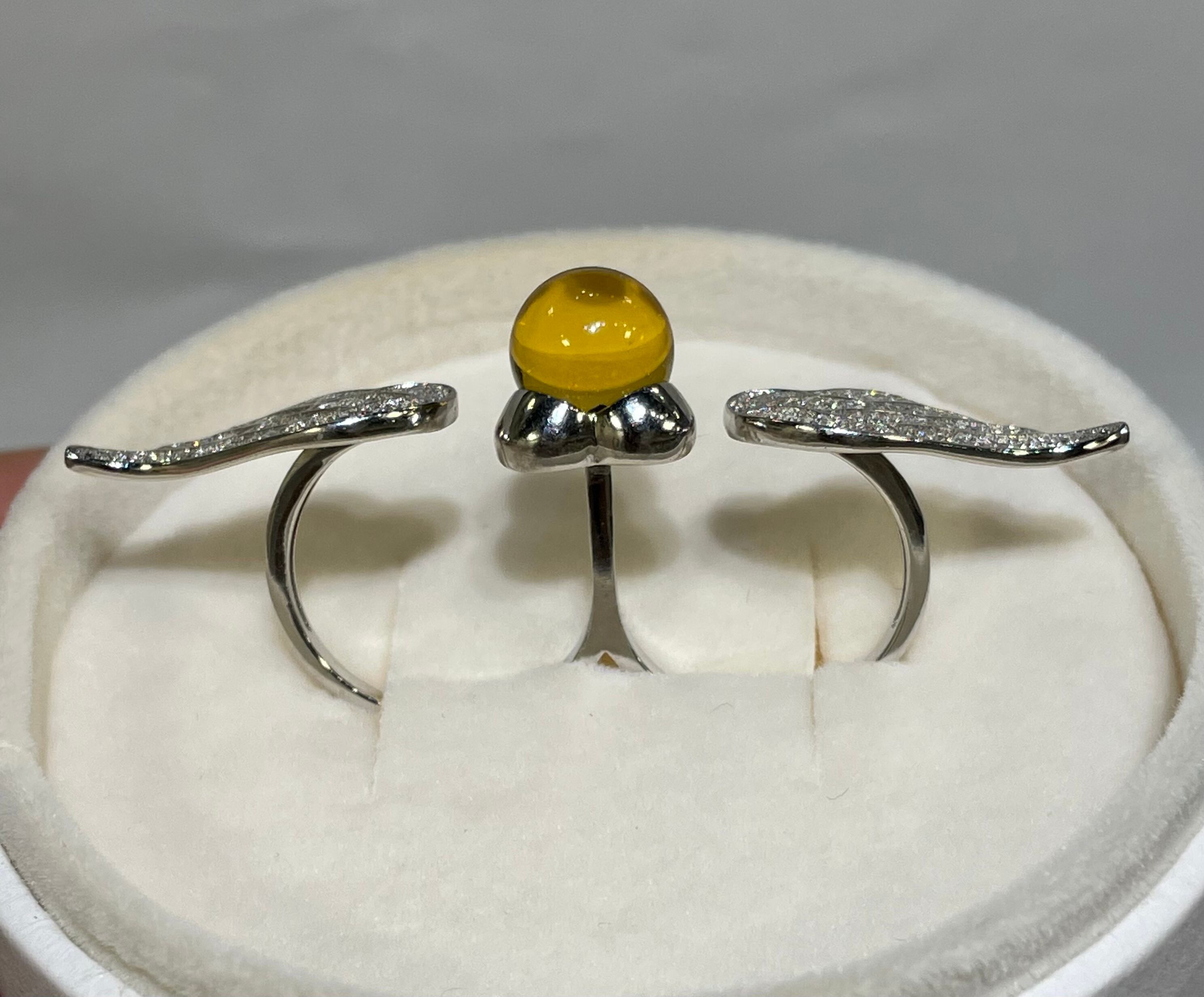 正真正銘のドミニカ共和国・サンピアゴ産、天然ブルーアンバー(青琥珀)指輪です。ハイグレード のブルーアンバーを使用しています。