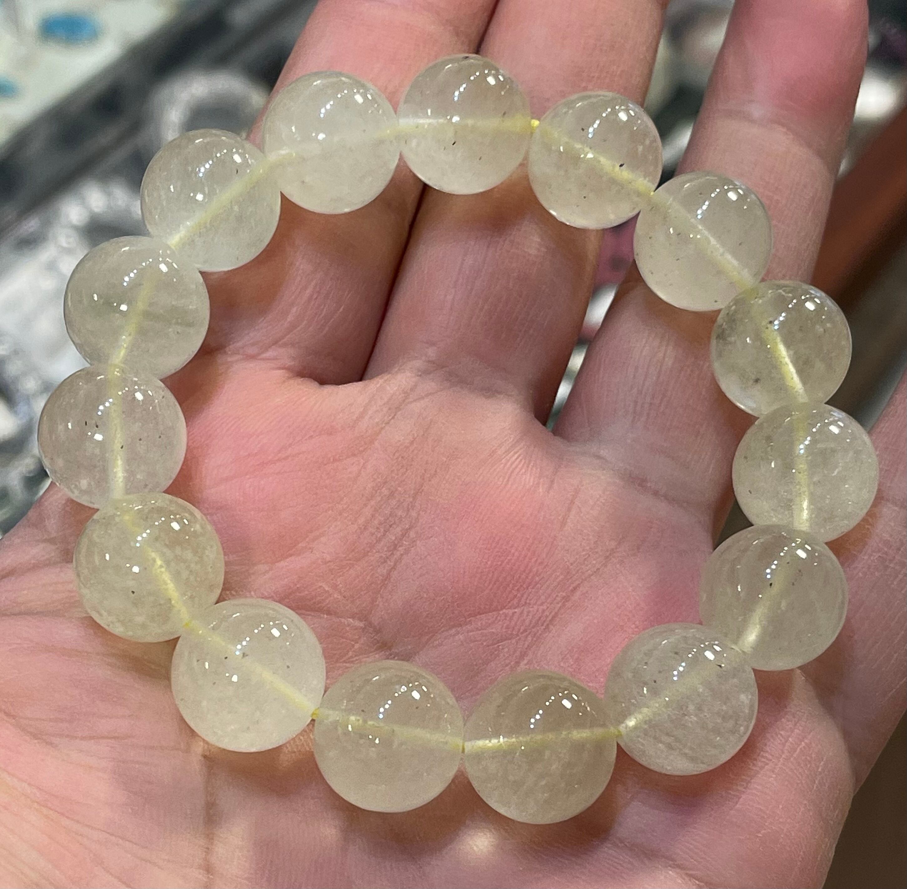 淡い黄色系が特徴であり、二酸化珪素(SiO2)の純度が98%で、黄緑、深緑、無色、乳白色等もあり気泡と内包物も良く含まれています。