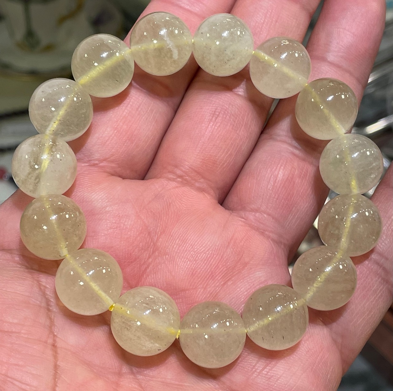 淡い黄色系が特徴であり、二酸化珪素(SiO2)の純度が98%で、黄緑、深緑、無色、乳白色等もあり気泡と内包物も良く含まれています。