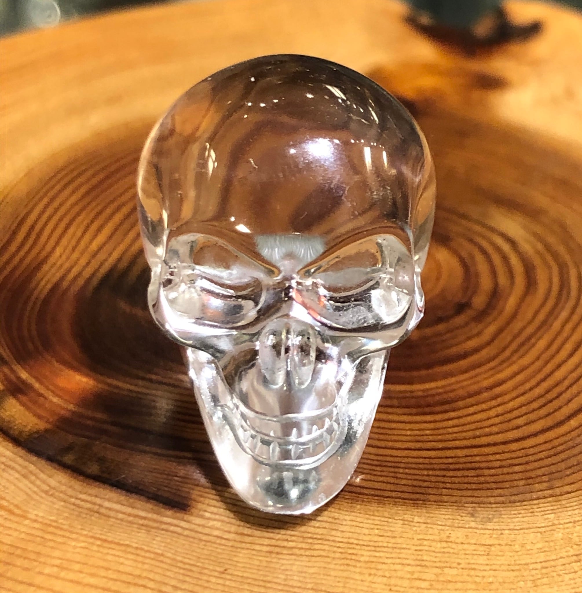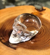透明度抜群の天然水晶を精巧に彫って作った、水晶ドクロです。ブレスレット用貫通穴あり!