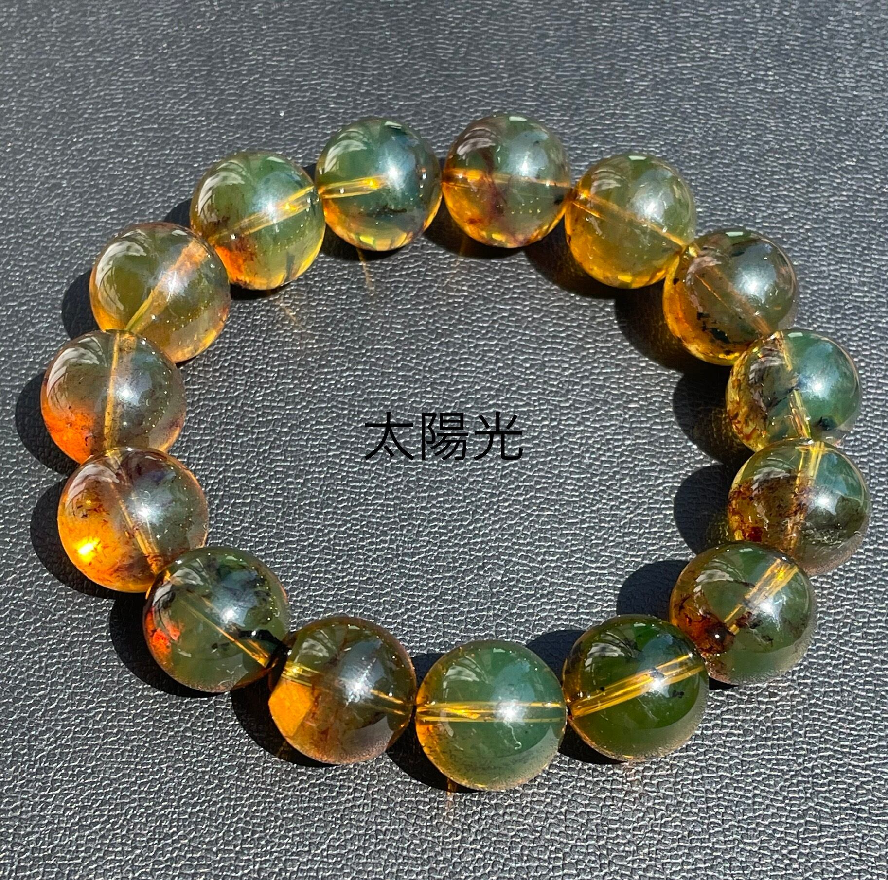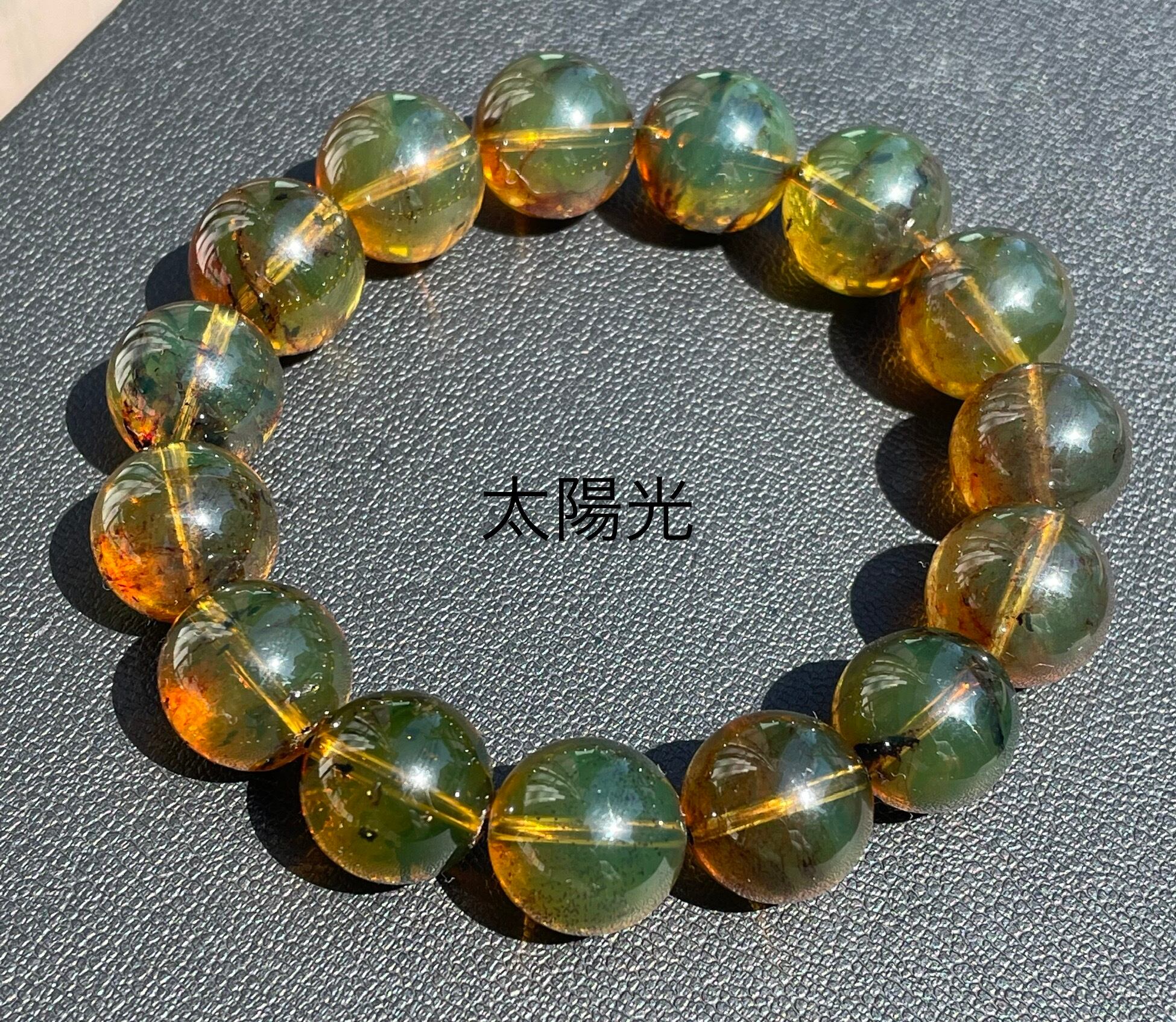 激安在庫処分 ドミニカ産 天然ブルーアンバー ブレスレット14mm 高品質