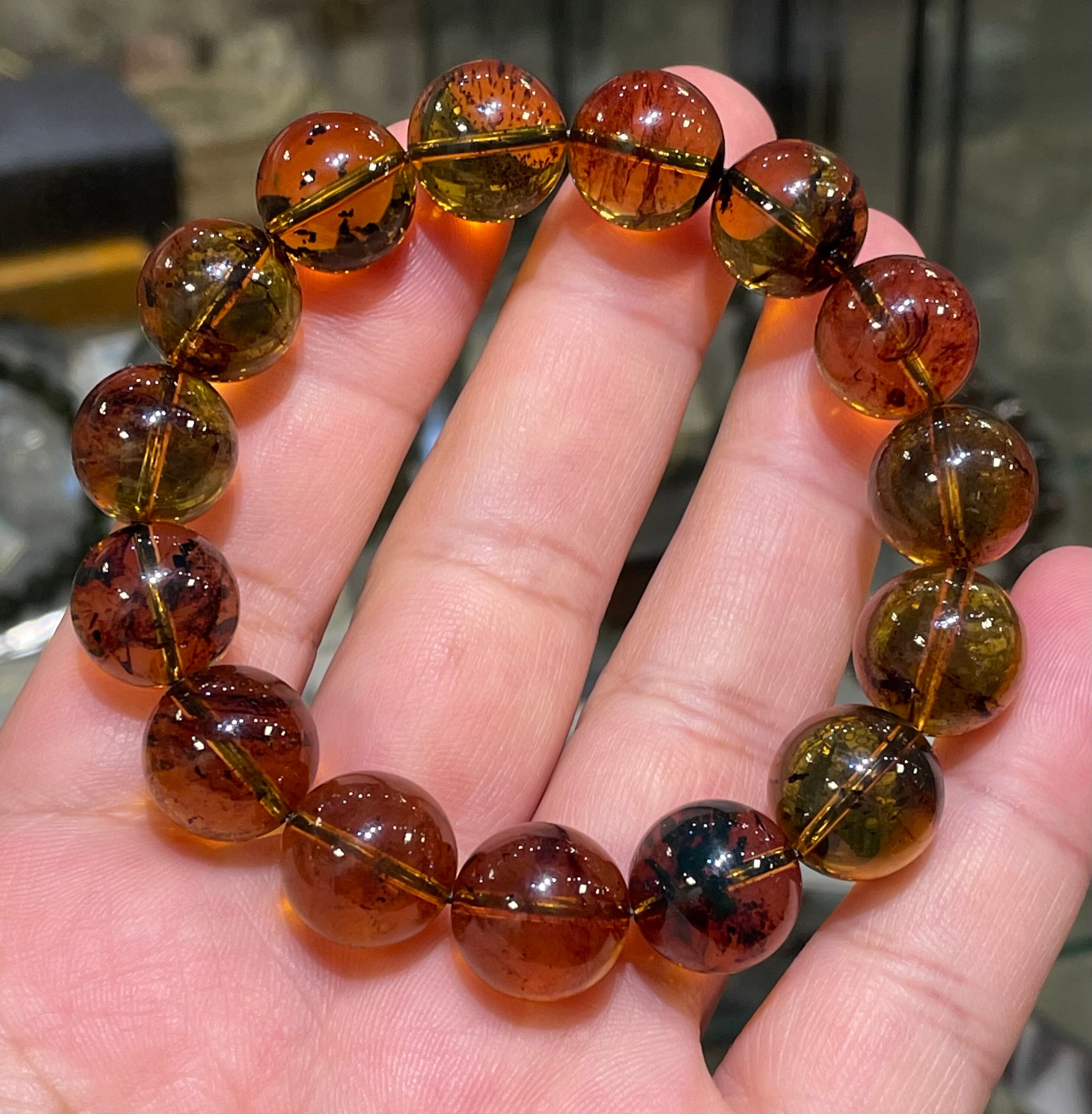 正真正銘のドミニカ共和国・サンピアゴ産、天然ブルーアンバー(青琥珀)ブレスレットです。ハイグレード のブルーアンバーを使用しています。