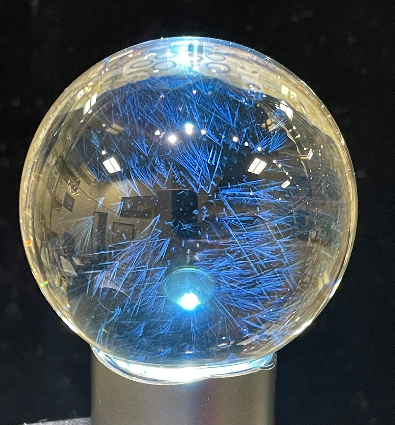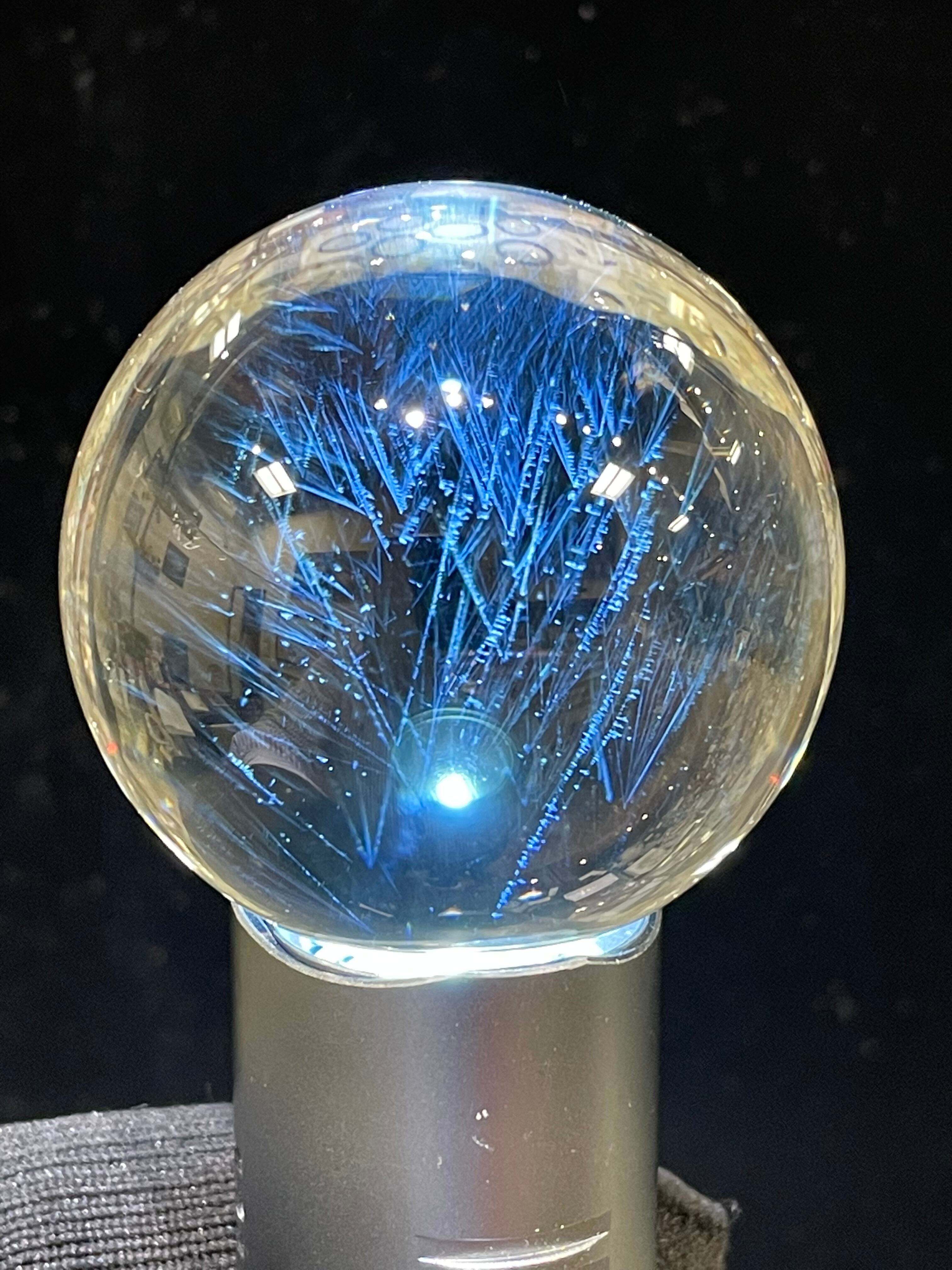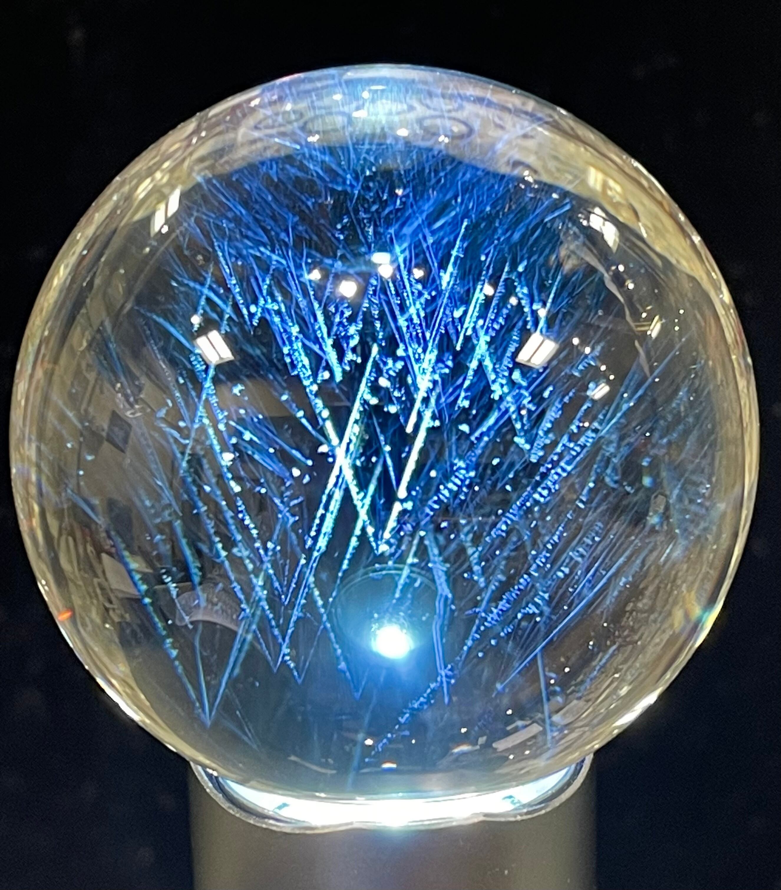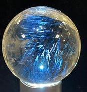 透明度が抜群の水晶丸玉にブルーエンジェルラダーがまるで流れ星のように綺麗に結晶された究極の水晶スフィアです。