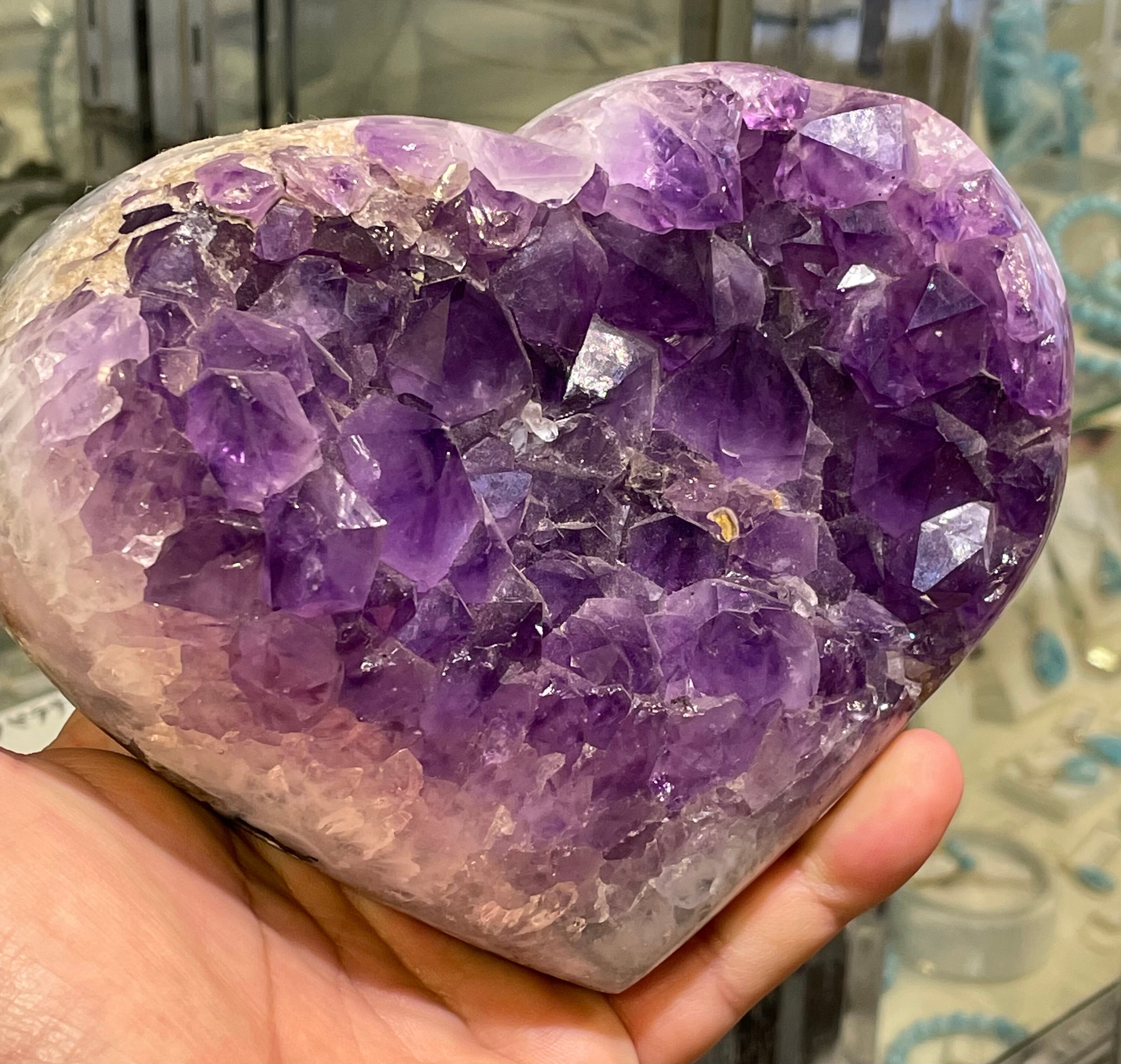 激安卸価格 ウルグアイ産 高品質ロマネサイトインアメジストクラスター ハート型