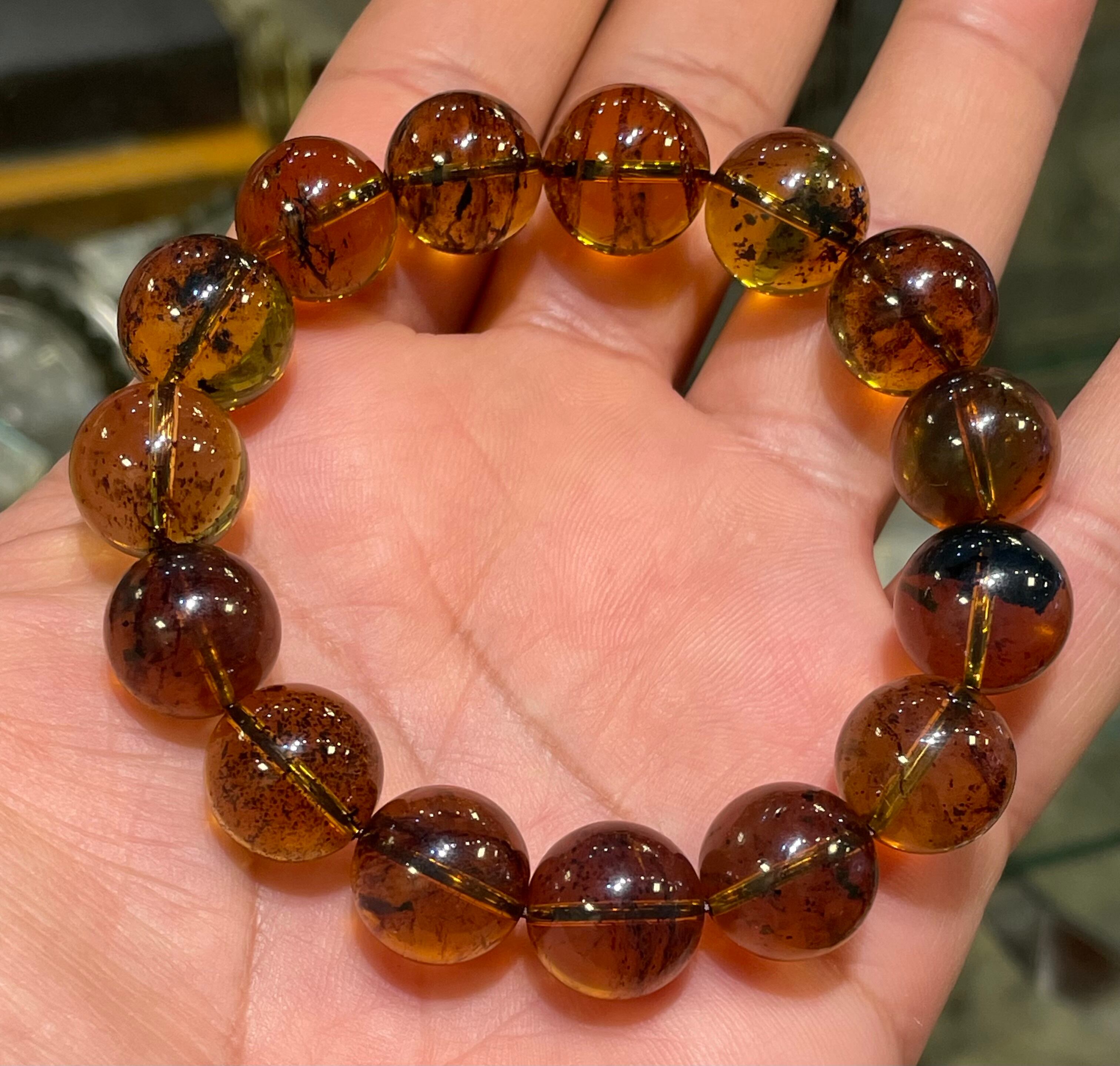 激安在庫処分 ドミニカ産 天然ブルーアンバー ブレスレット14mm 高品質