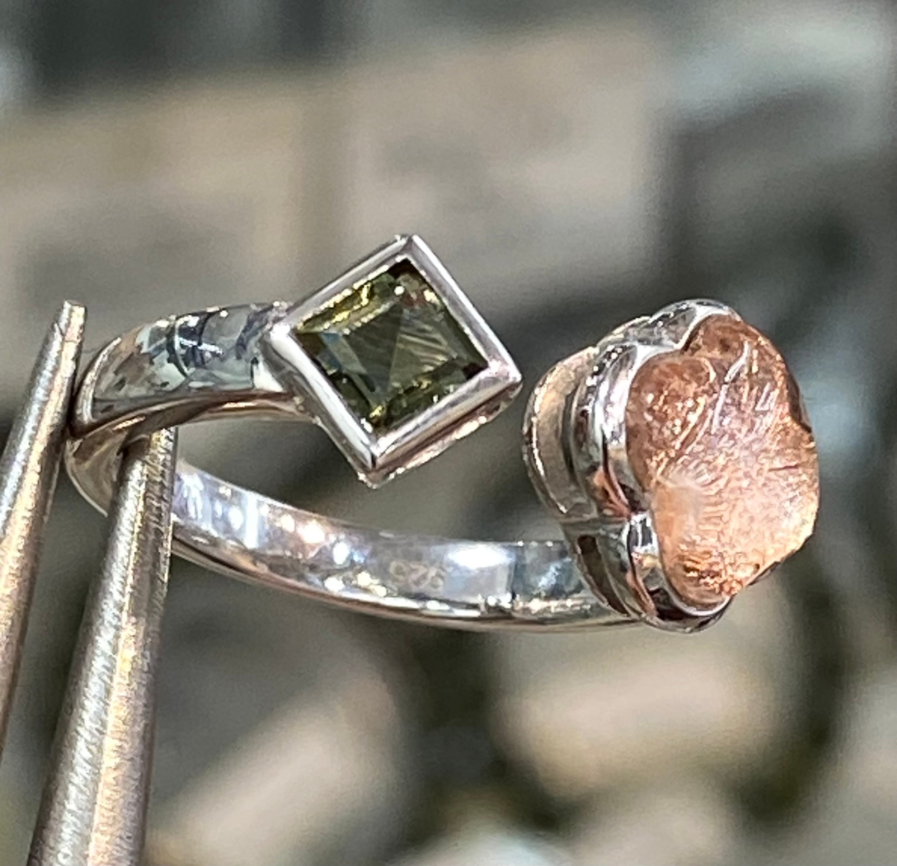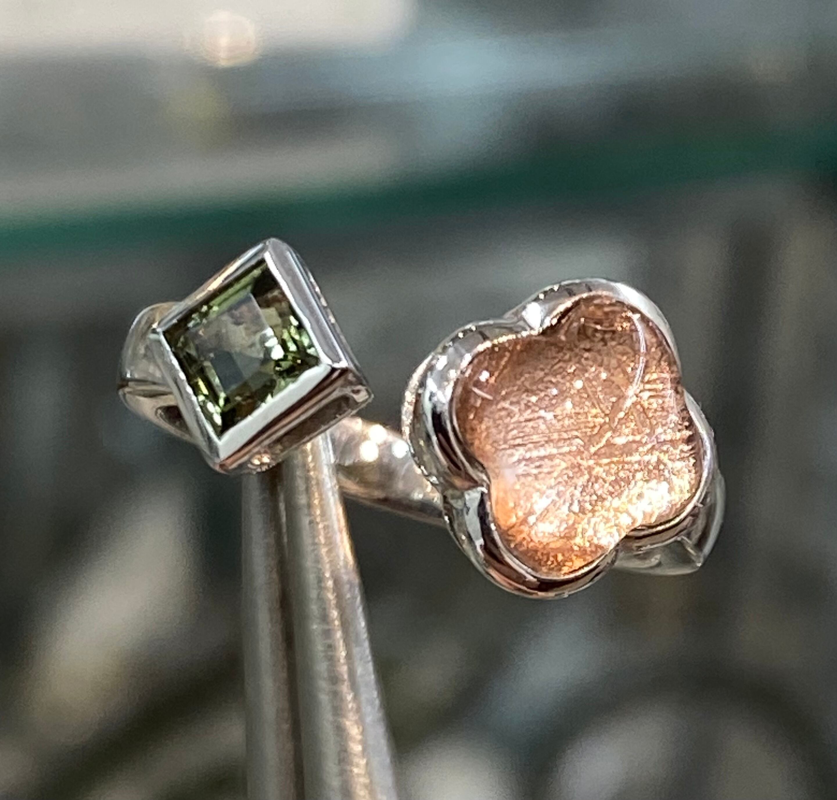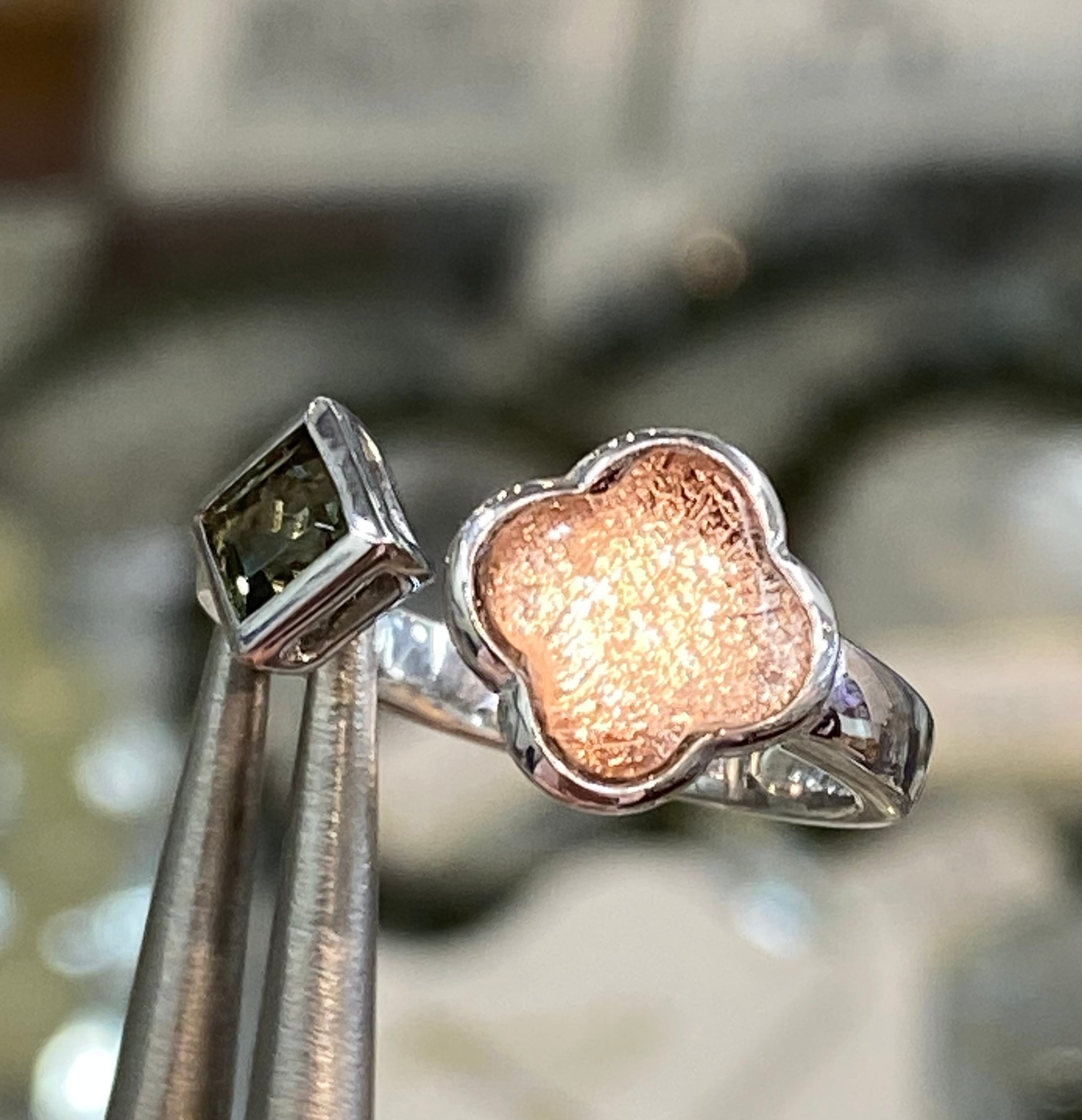 特選!高品質モルダバイトとギベオンで作ったリングです。