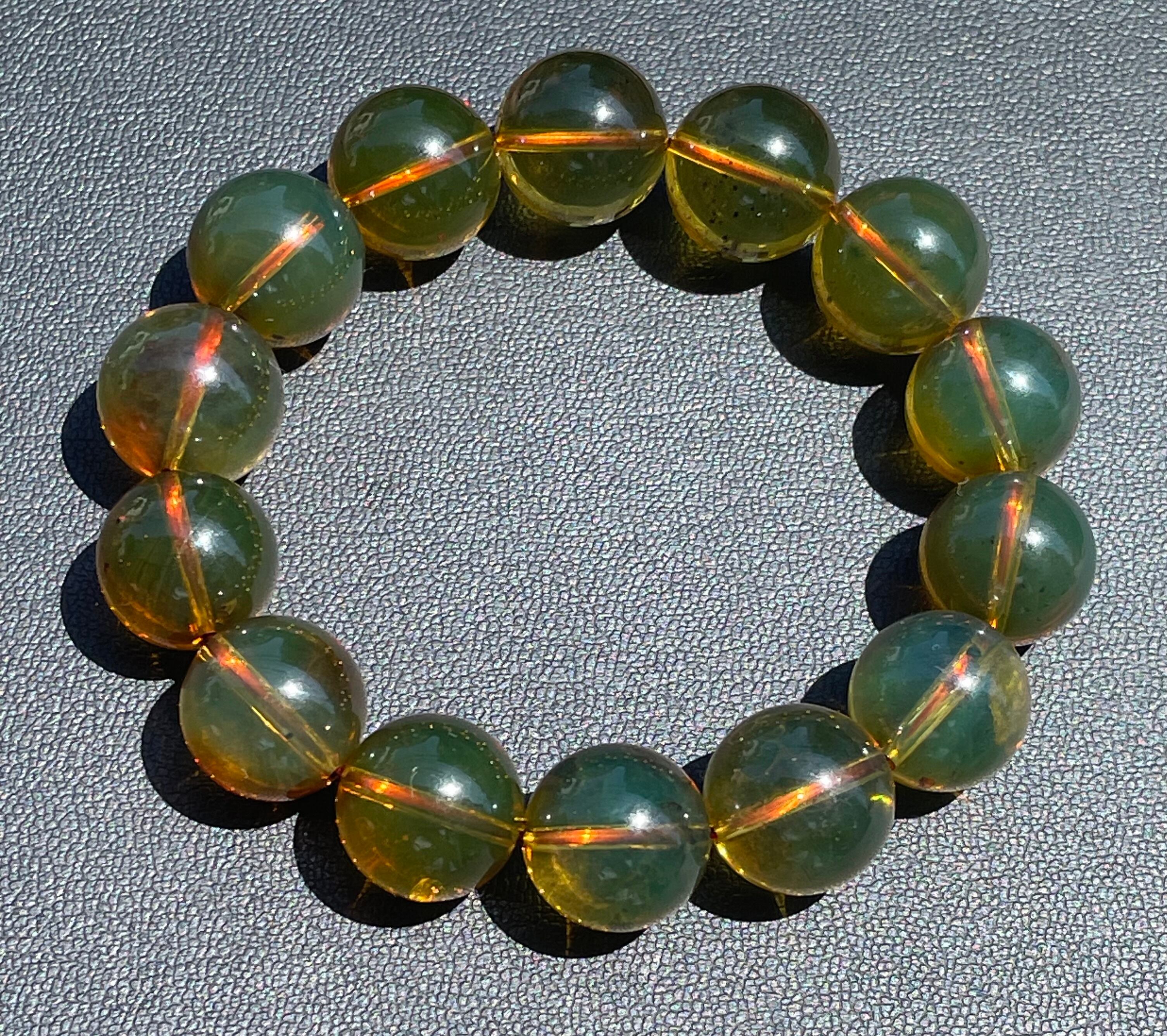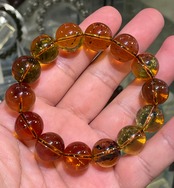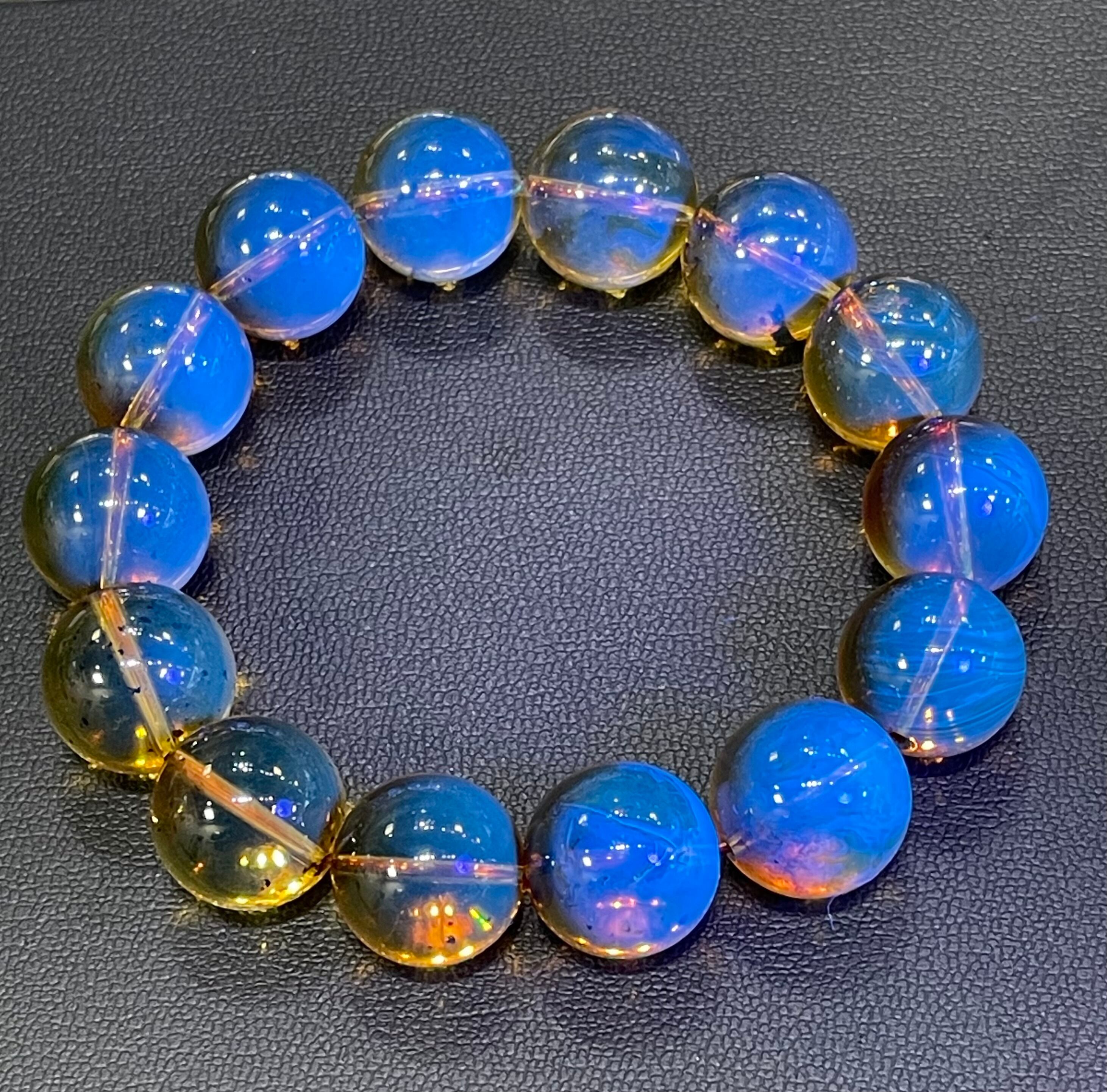 正真正銘のドミニカ共和国・サンピアゴ産、天然ブルーアンバー(青琥珀)ブレスレットです。ハイグレード のブルーアンバーを使用しています。