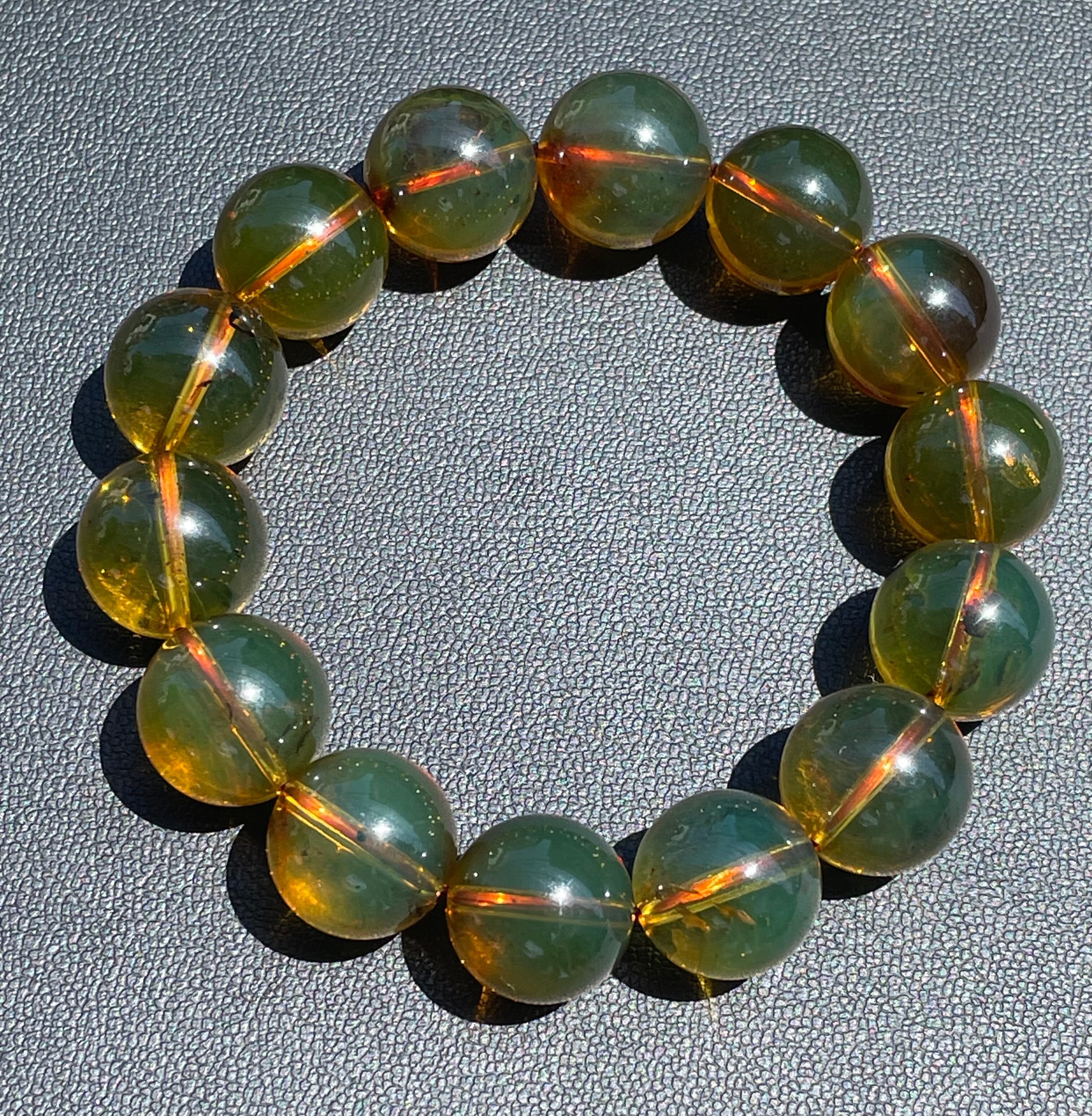 激安在庫処分 ドミニカ産 天然ブルーアンバー ブレスレット15〜16mm 高品質