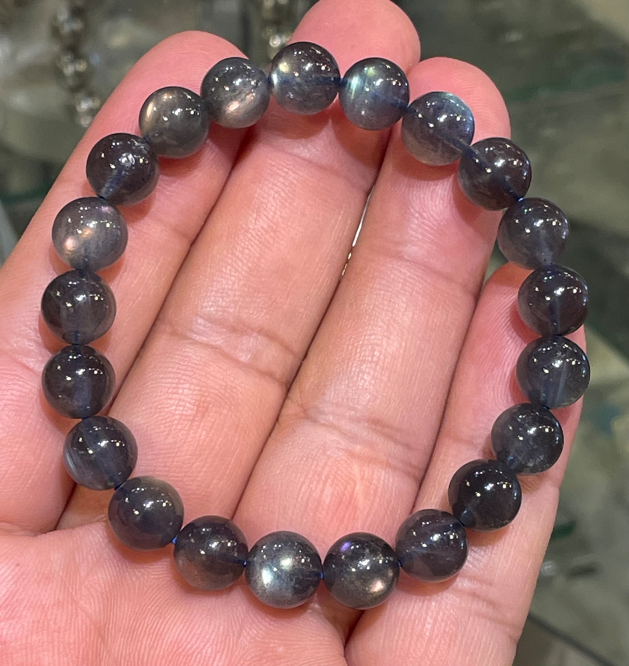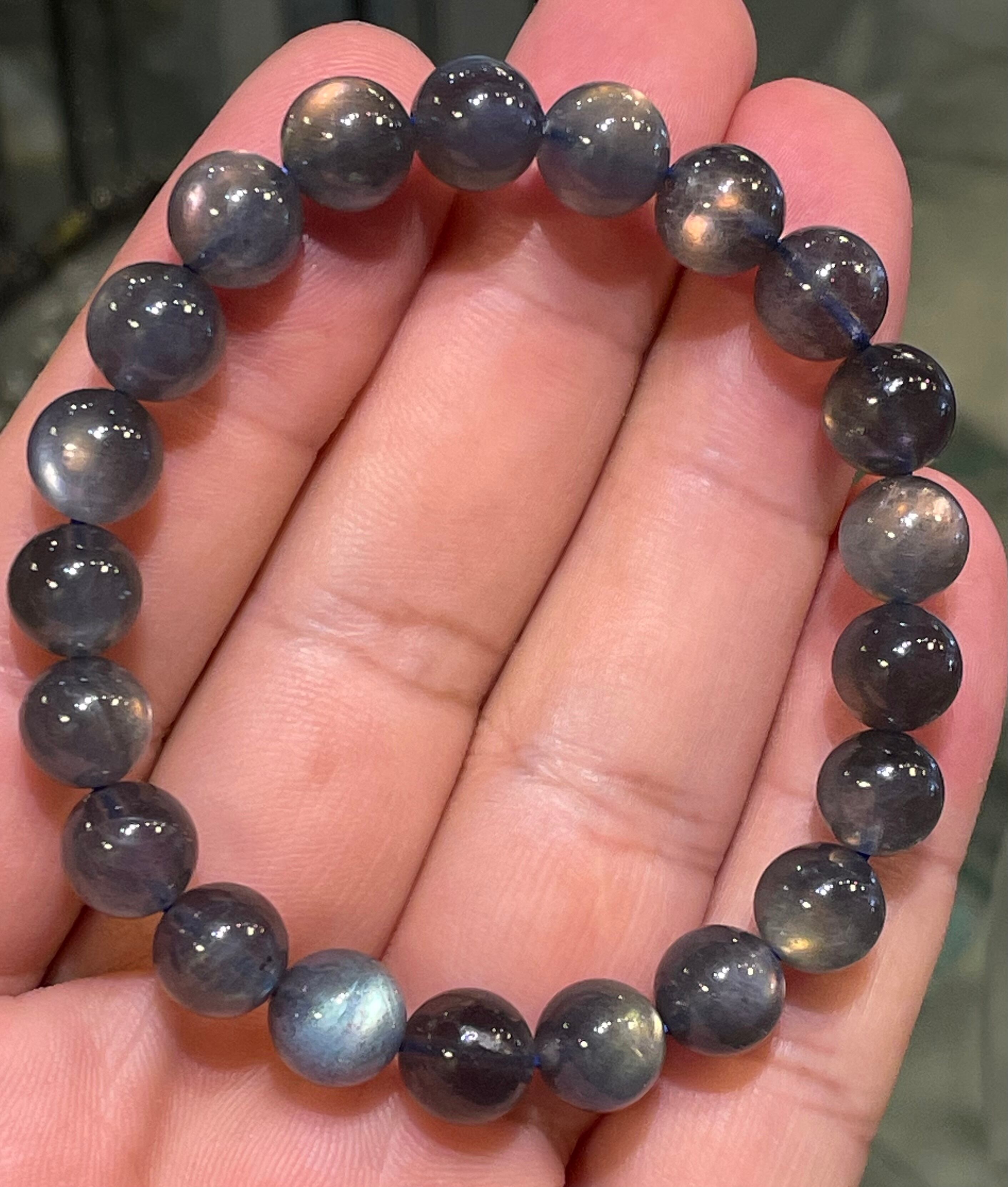 マダガスカル産のレインボーシラーが非常に強い高品質のラブラドライトブレスレットです。