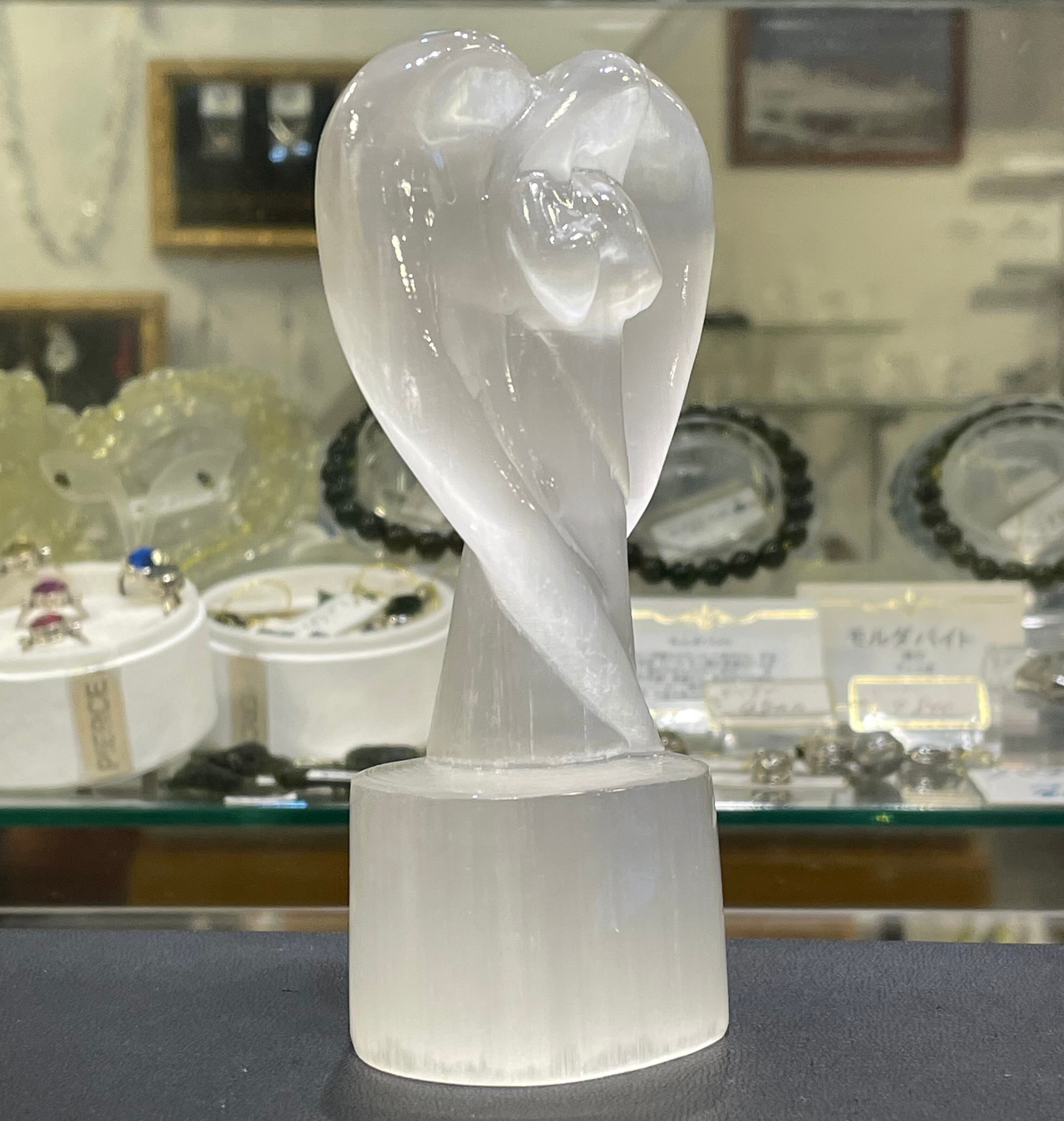 大きな!天然セレナイトエンジェル セレナイト天使 透石膏の天使 彫り物 彫刻