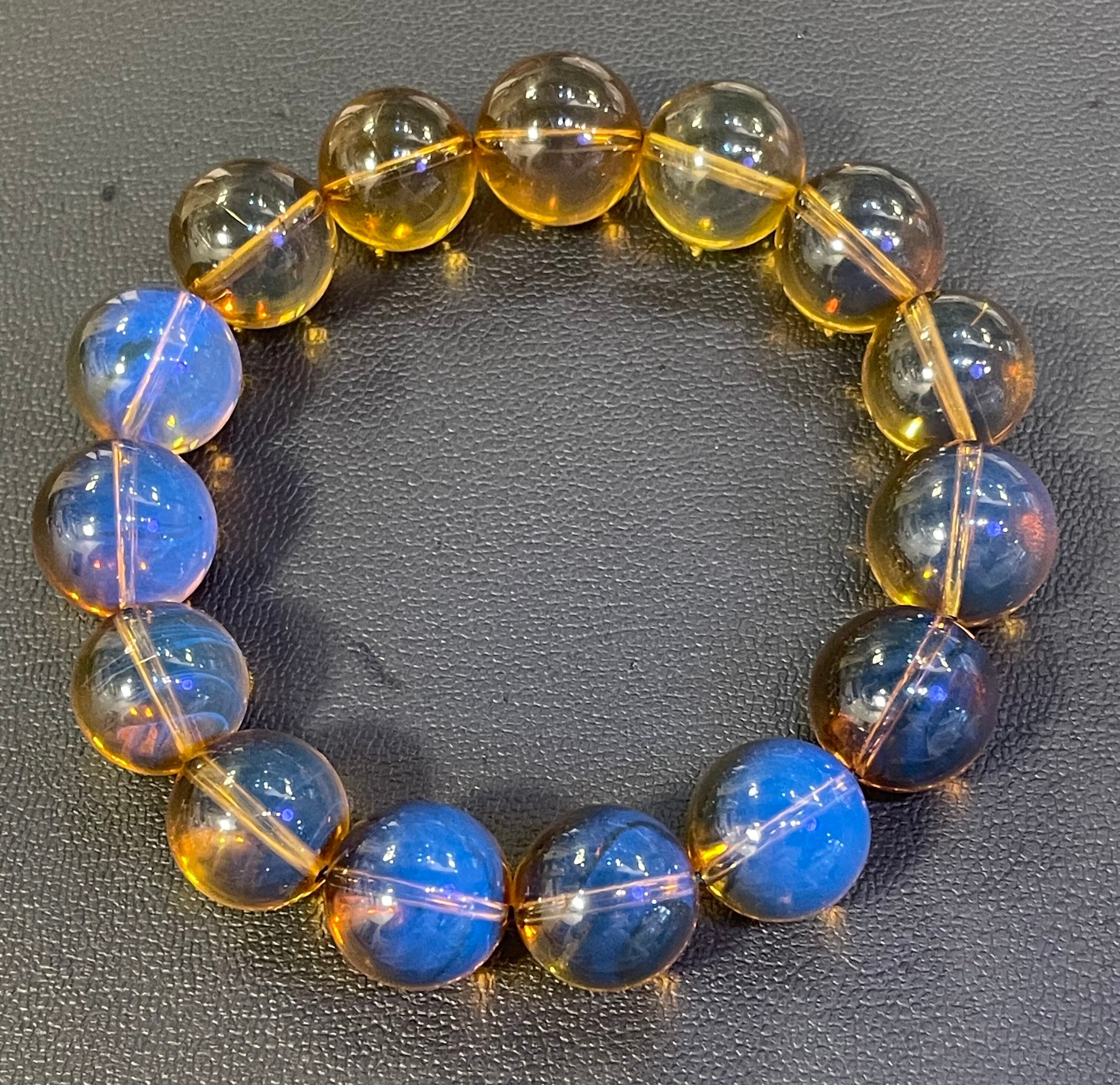 正真正銘のドミニカ共和国・サンピアゴ産、天然ブルーアンバー(青琥珀)ブレスレットです。ハイグレード のブルーアンバーを使用しています。