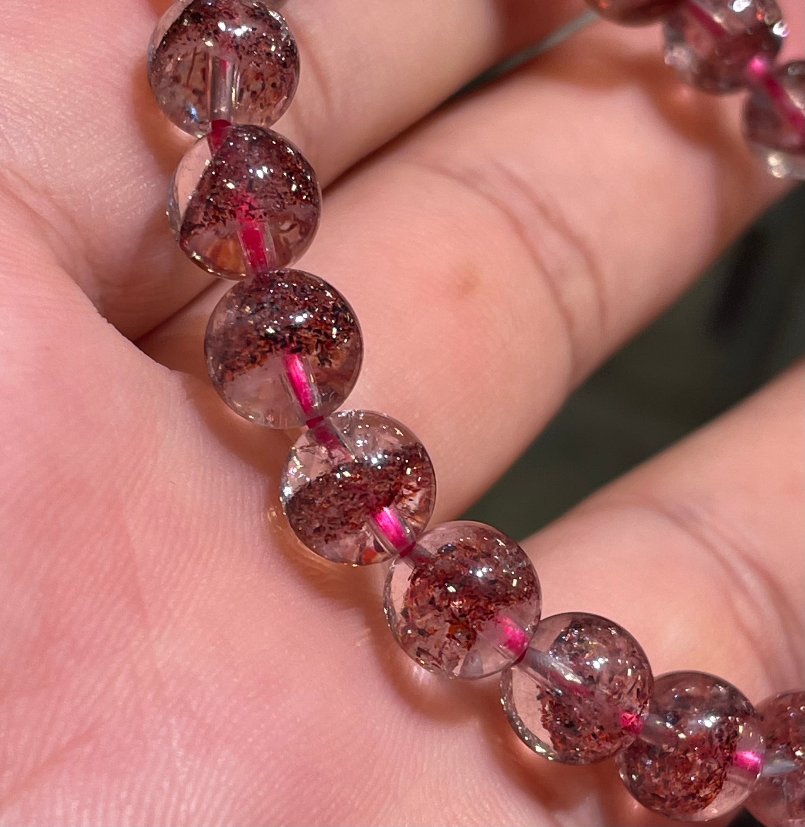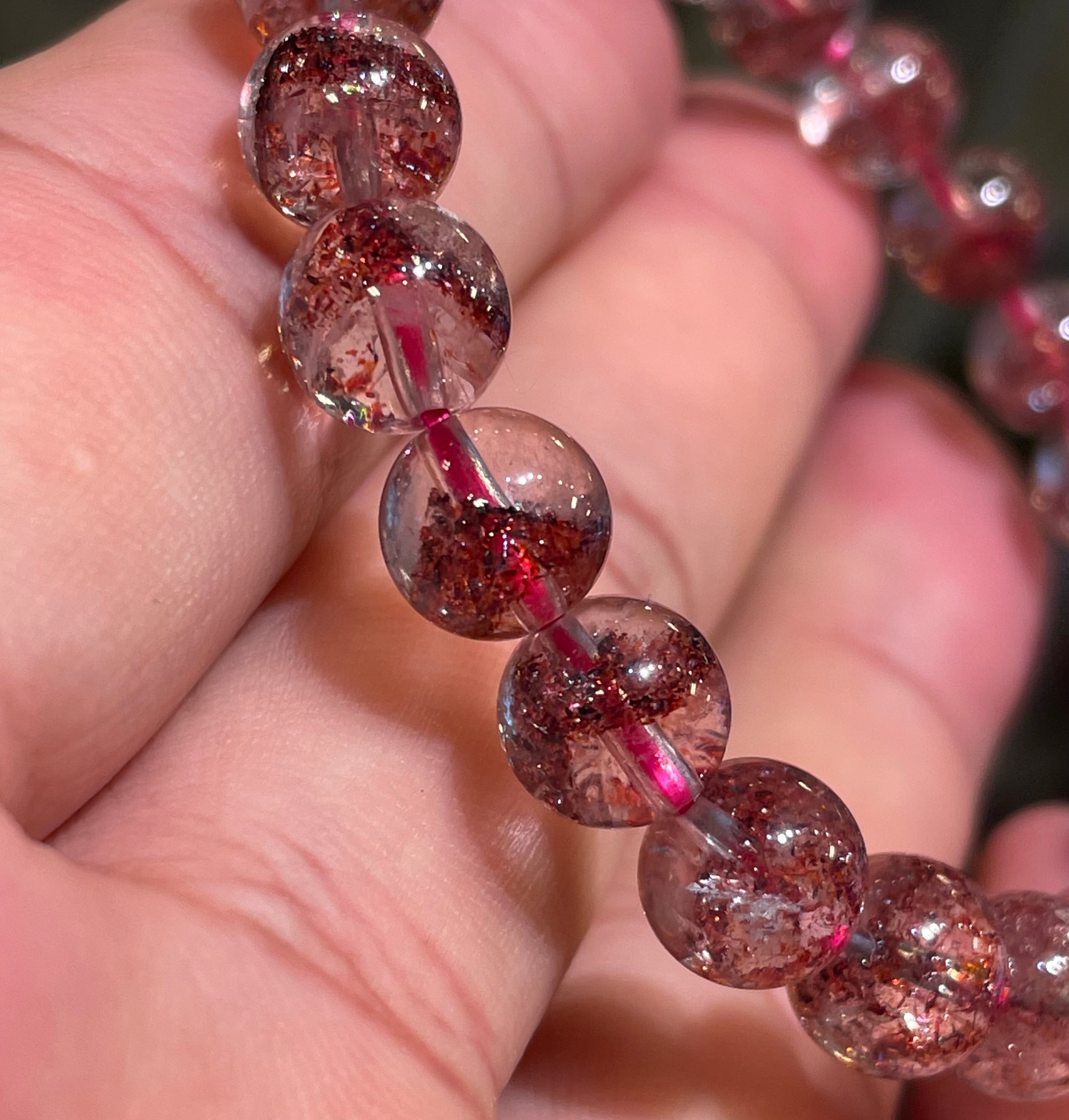 特選ハイグレード ファイヤクォーツブレスレットです。(レッドスーパーセブンクォーツ)です。鉱物名はレピドクロサイトインクォーツですが、ファイヤクォーツの愛称で流通してます。