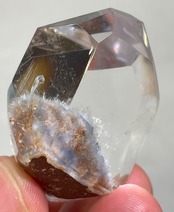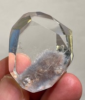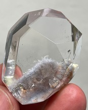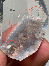 透明度抜群のデュモルチェライトインクォーツに小さな結晶がいくつ貫入した貫入水晶入りデュモルチェライトポイントです。ポリッシュ!