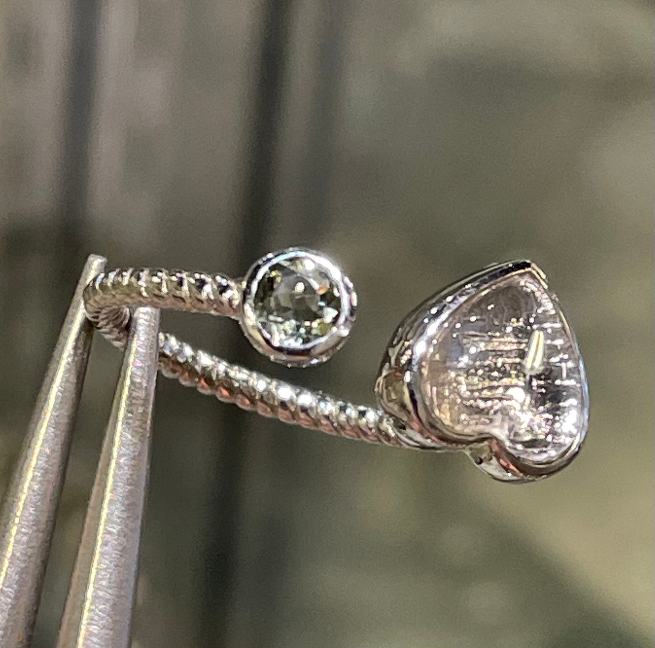 激安卸価格 特選!天然モルダバイトとギベオン指輪 シルバー925 ハート型