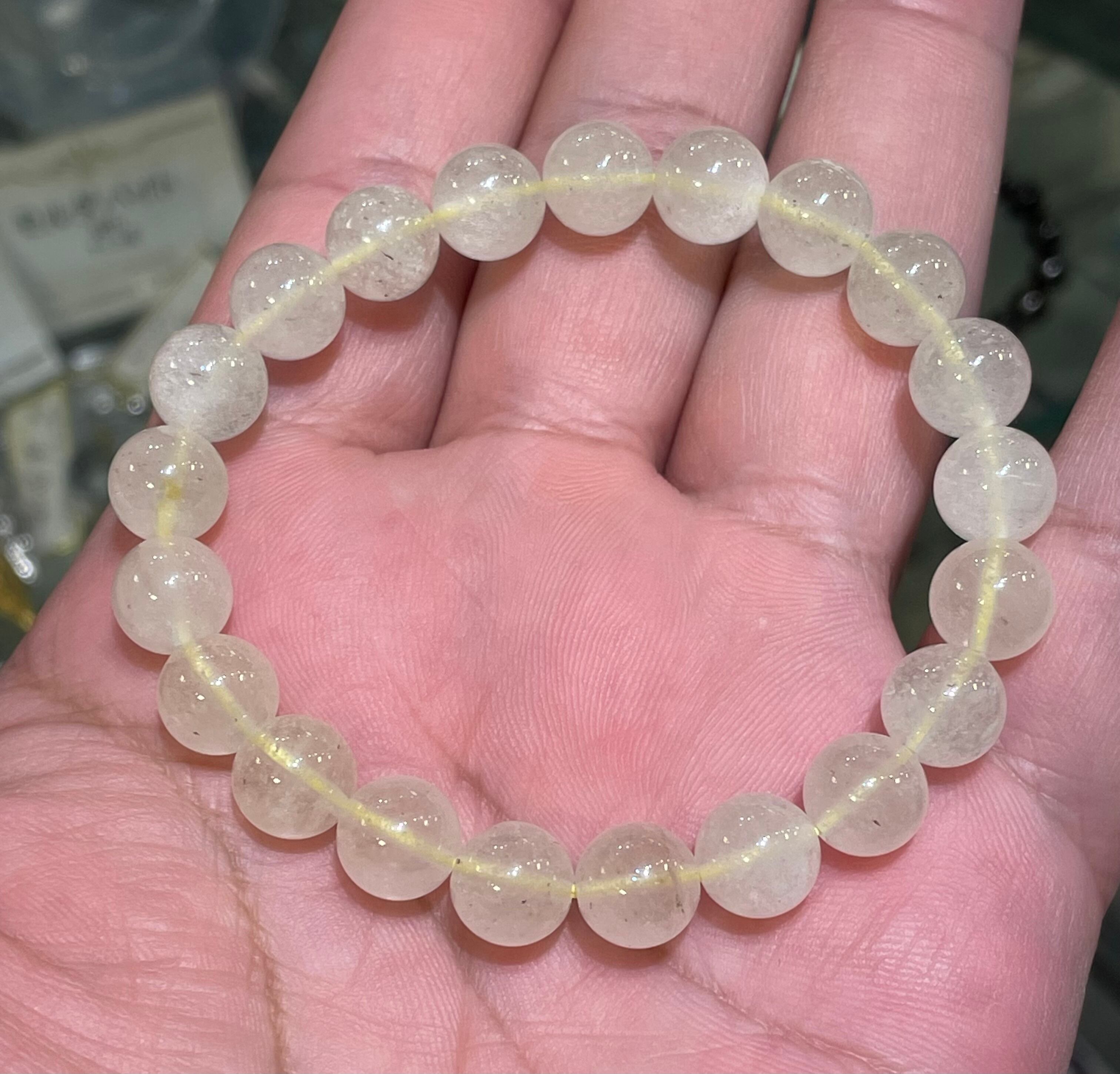 淡い黄色系が特徴であり、二酸化珪素(SiO2)の純度が98%で、黄緑、深緑、無色、乳白色等もあり気泡と内包物も良く含まれています。