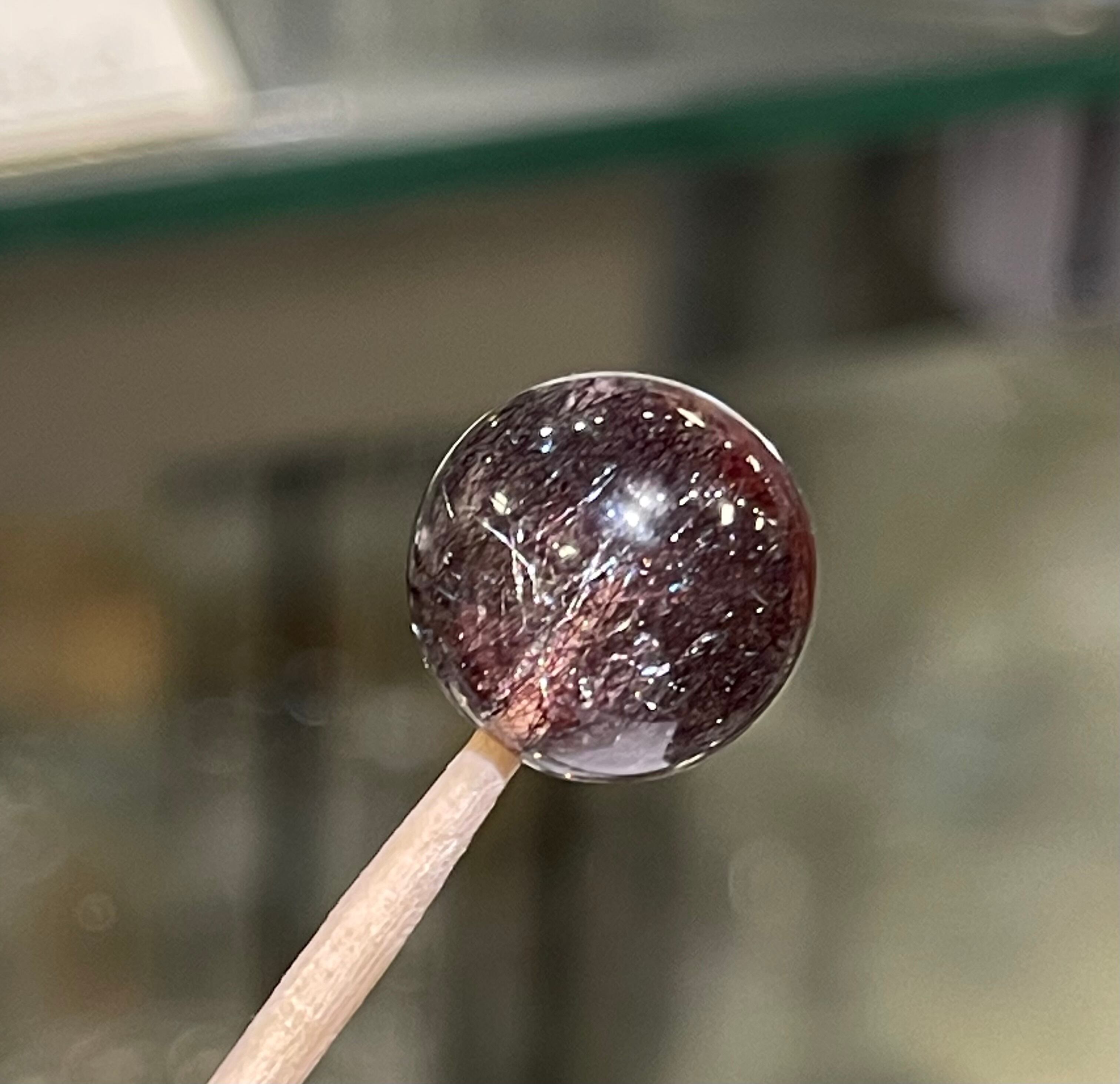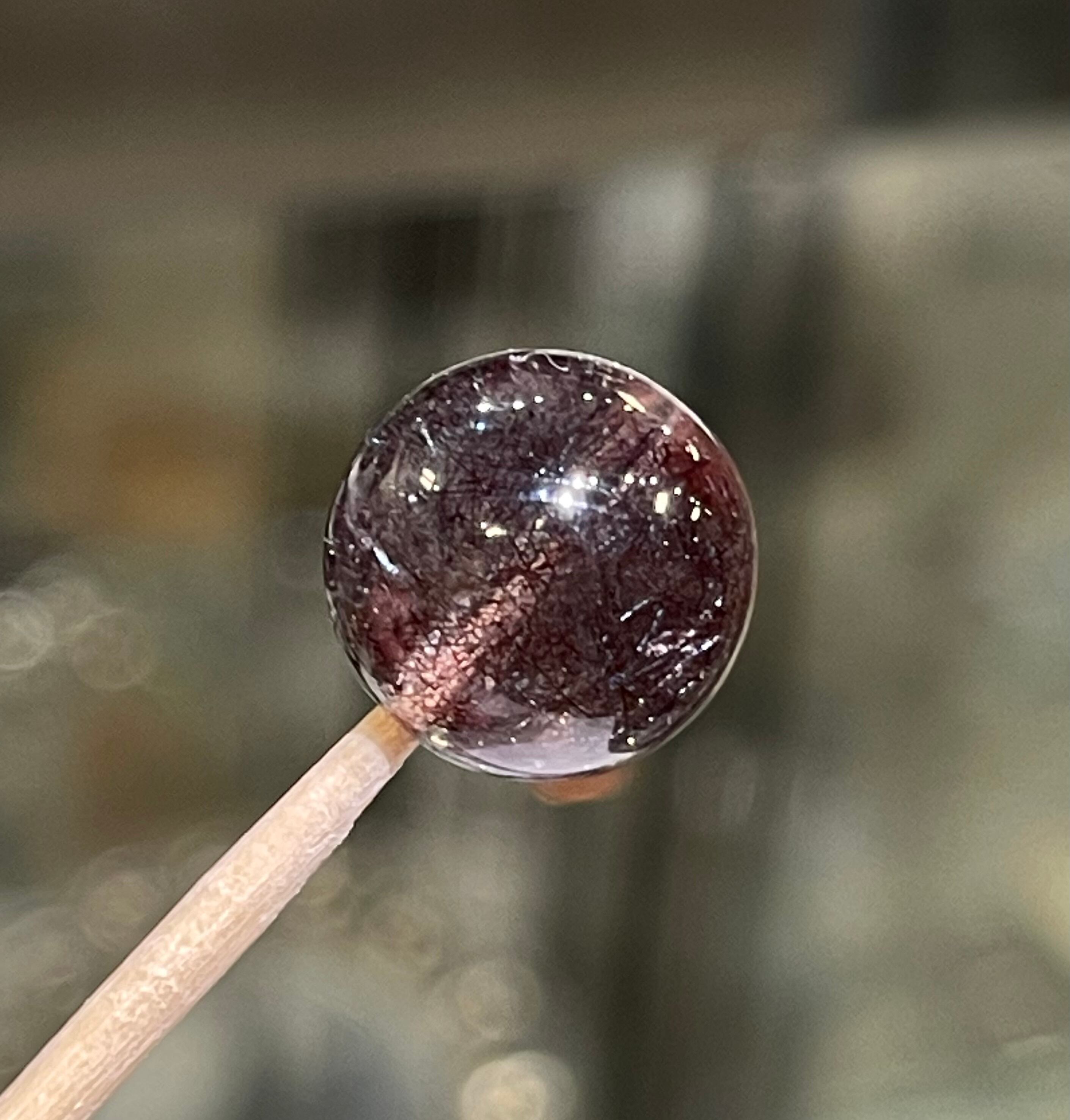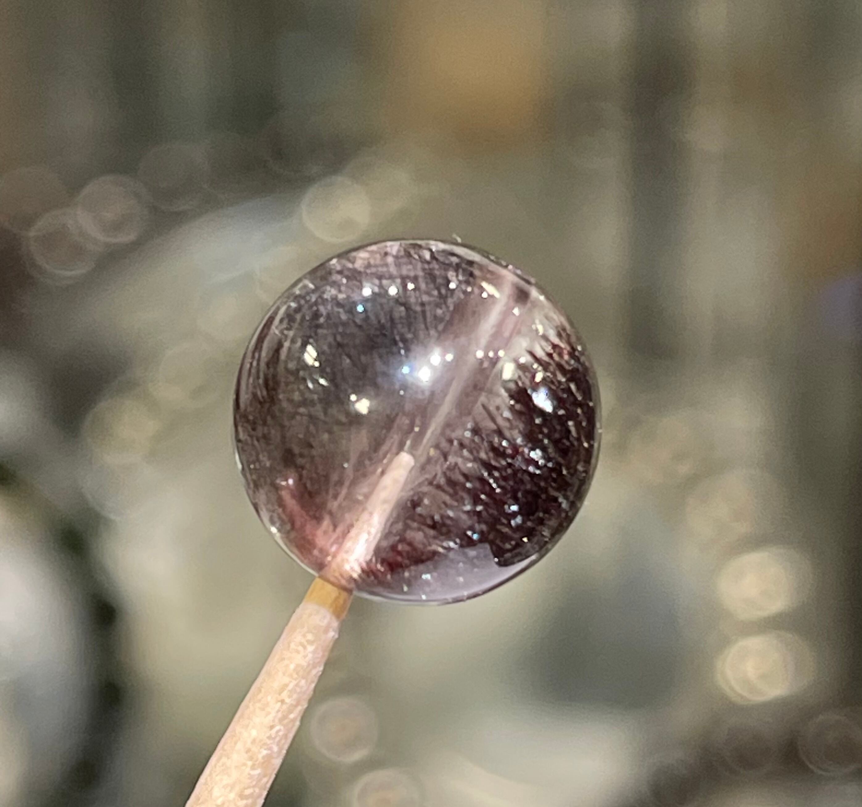新しいタイプのスーパーセブンで、レピドクロサイト、ヘマタイトニードルなどが打ち上げ花火のように見えるスーパーセブンのビーズです。