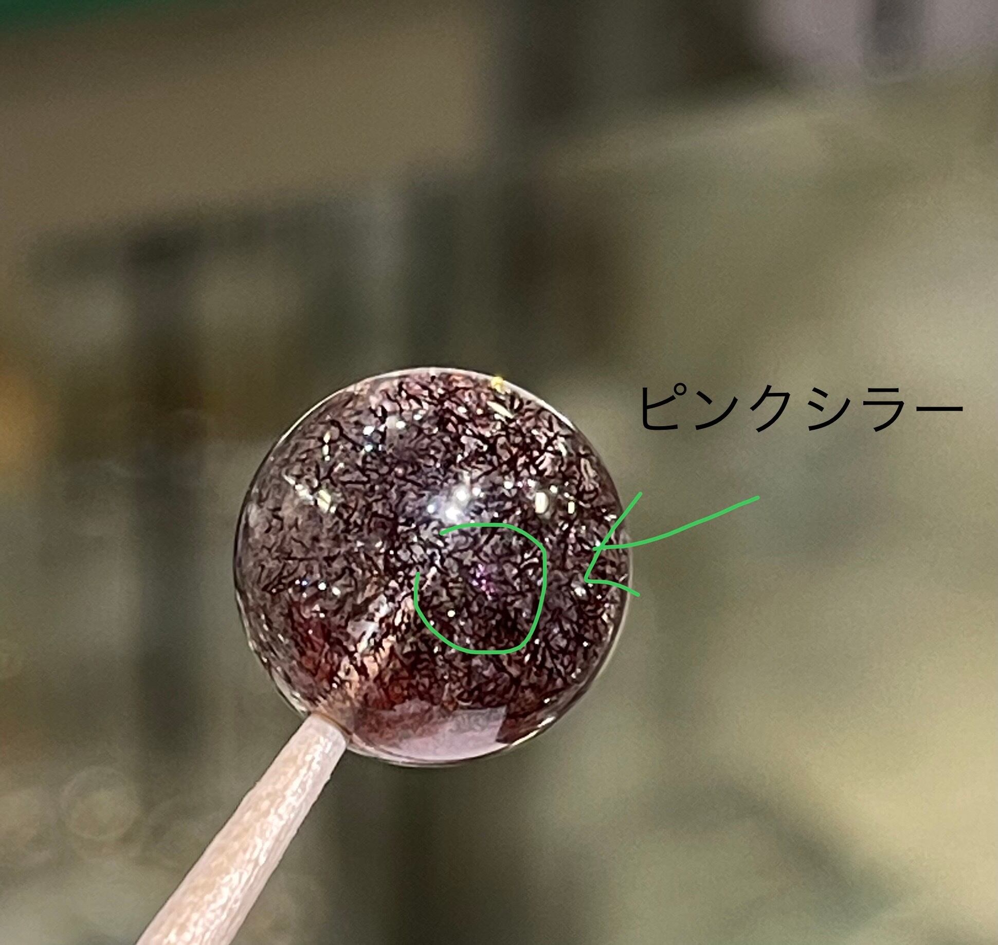 虹入りで、強い光を当てたらうっすらピンクシラーが浮かび上がります。