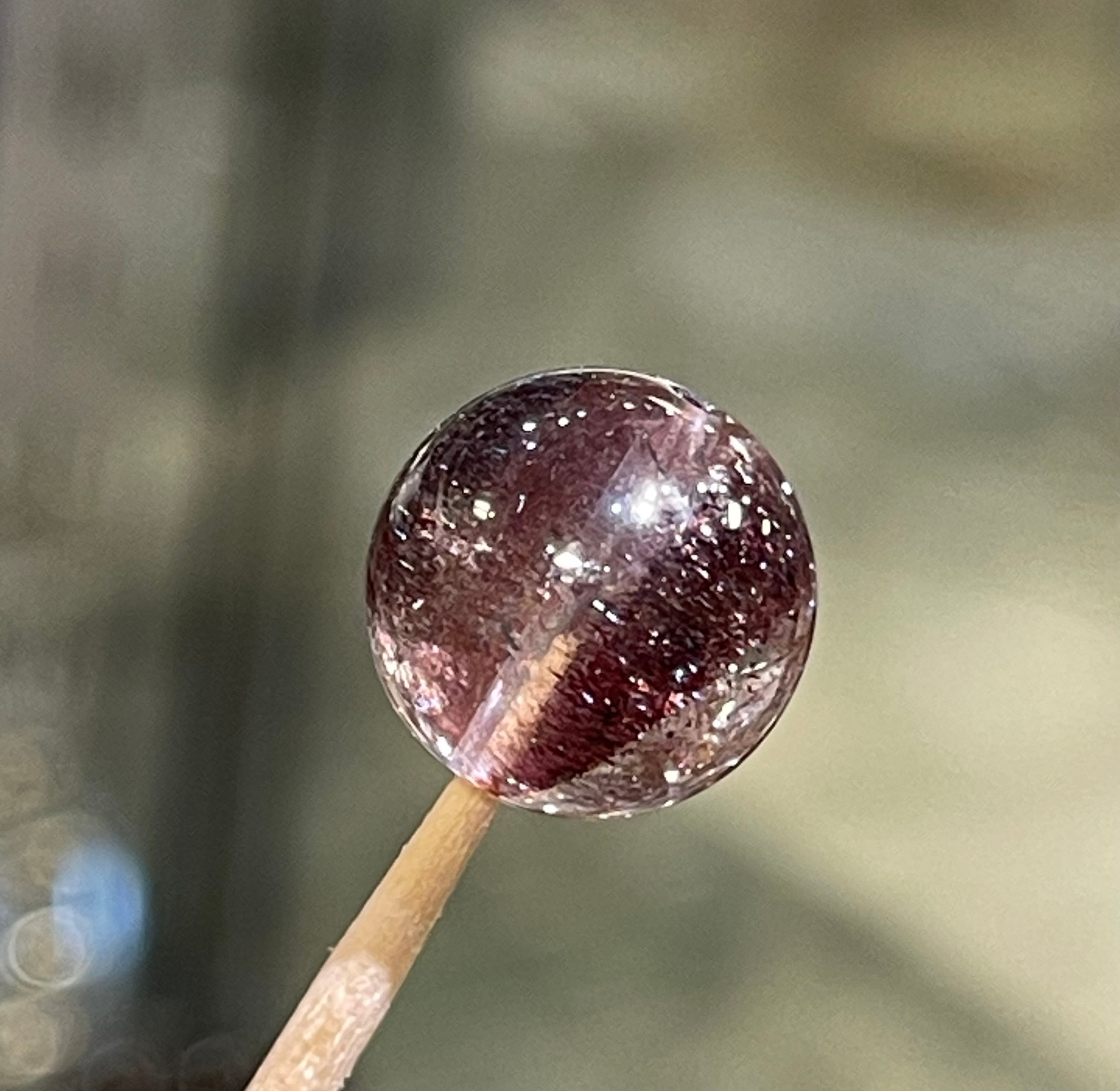 新しいタイプのスーパーセブンで、レピドクロサイト、ヘマタイトニードルなどが打ち上げ花火のように見えるスーパーセブンのビーズです。