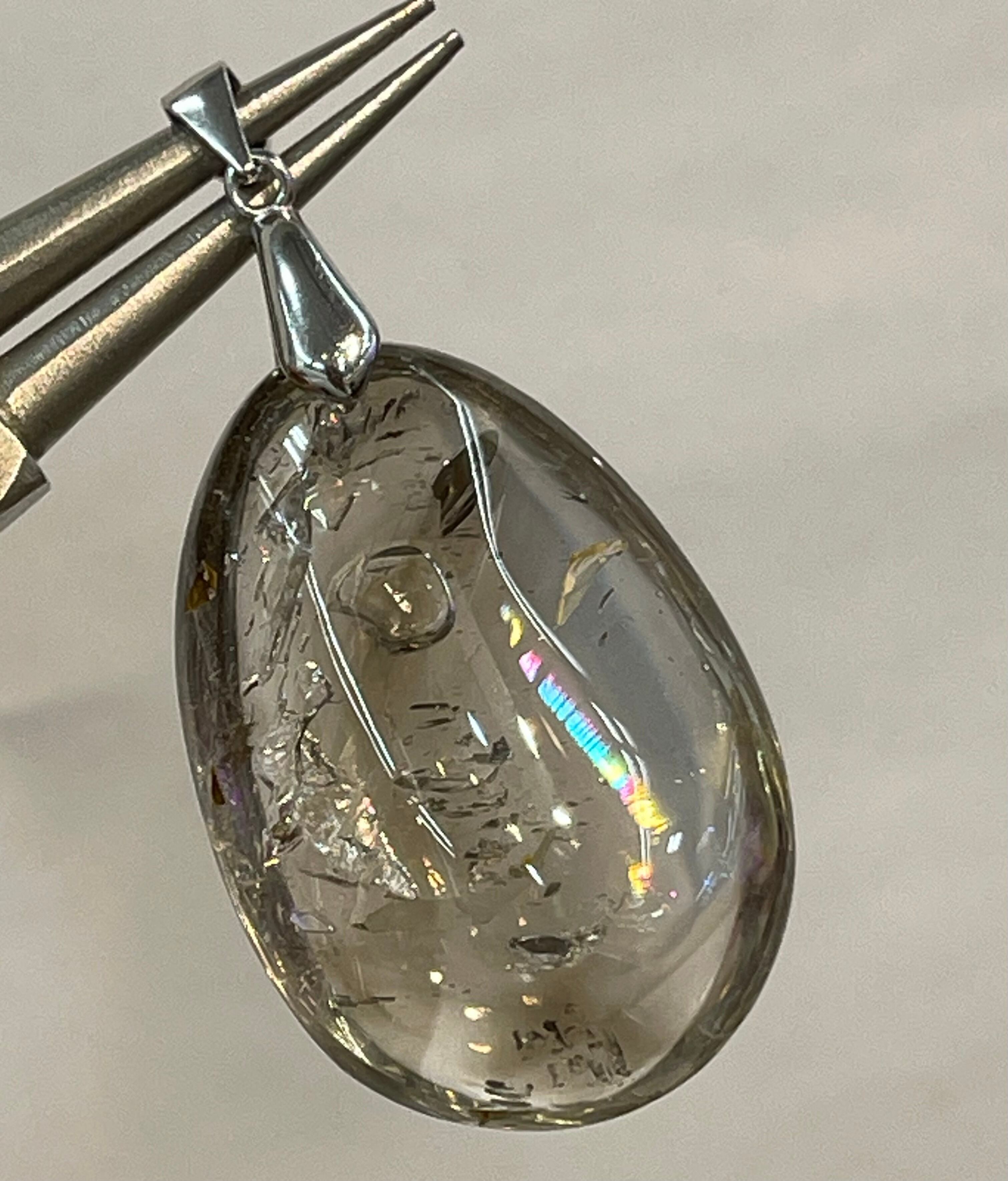 超レア 虹入り!水入りスモーキーエレスチャルペンダント☆古代水入り