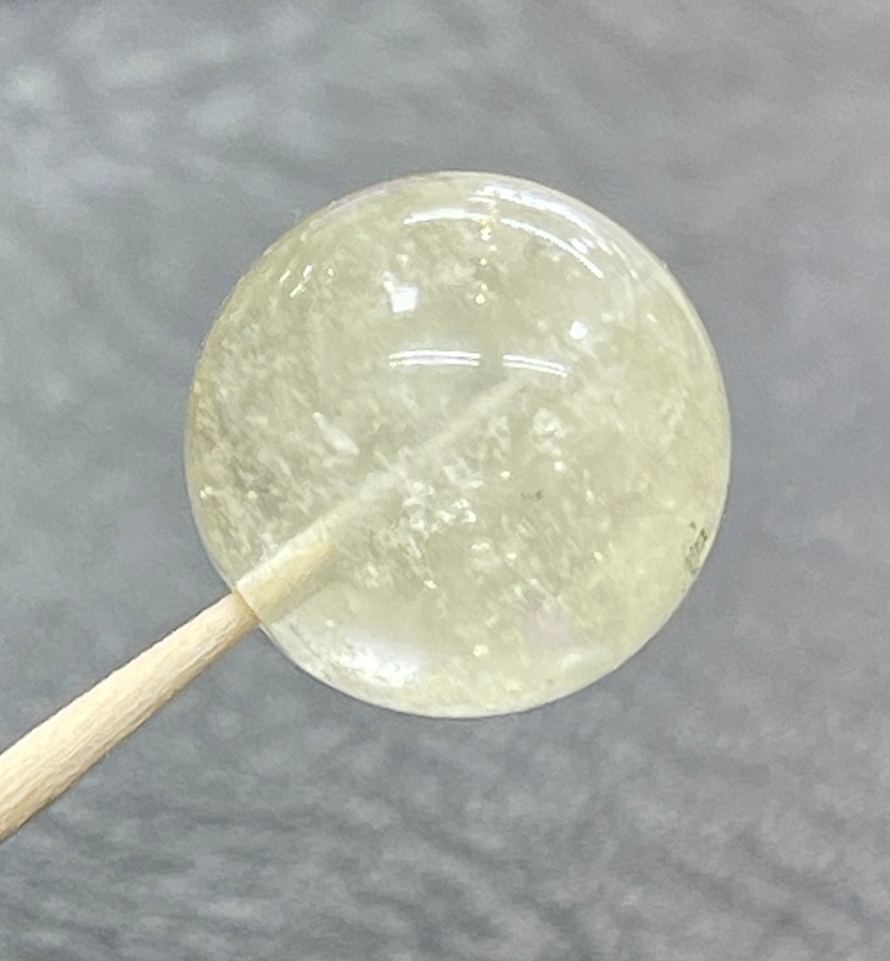 淡い黄色系が特徴であり、二酸化珪素(SiO2)の純度が98%で、黄緑、深緑、無色、乳白色等もあり気泡と内包物も良く含まれています。