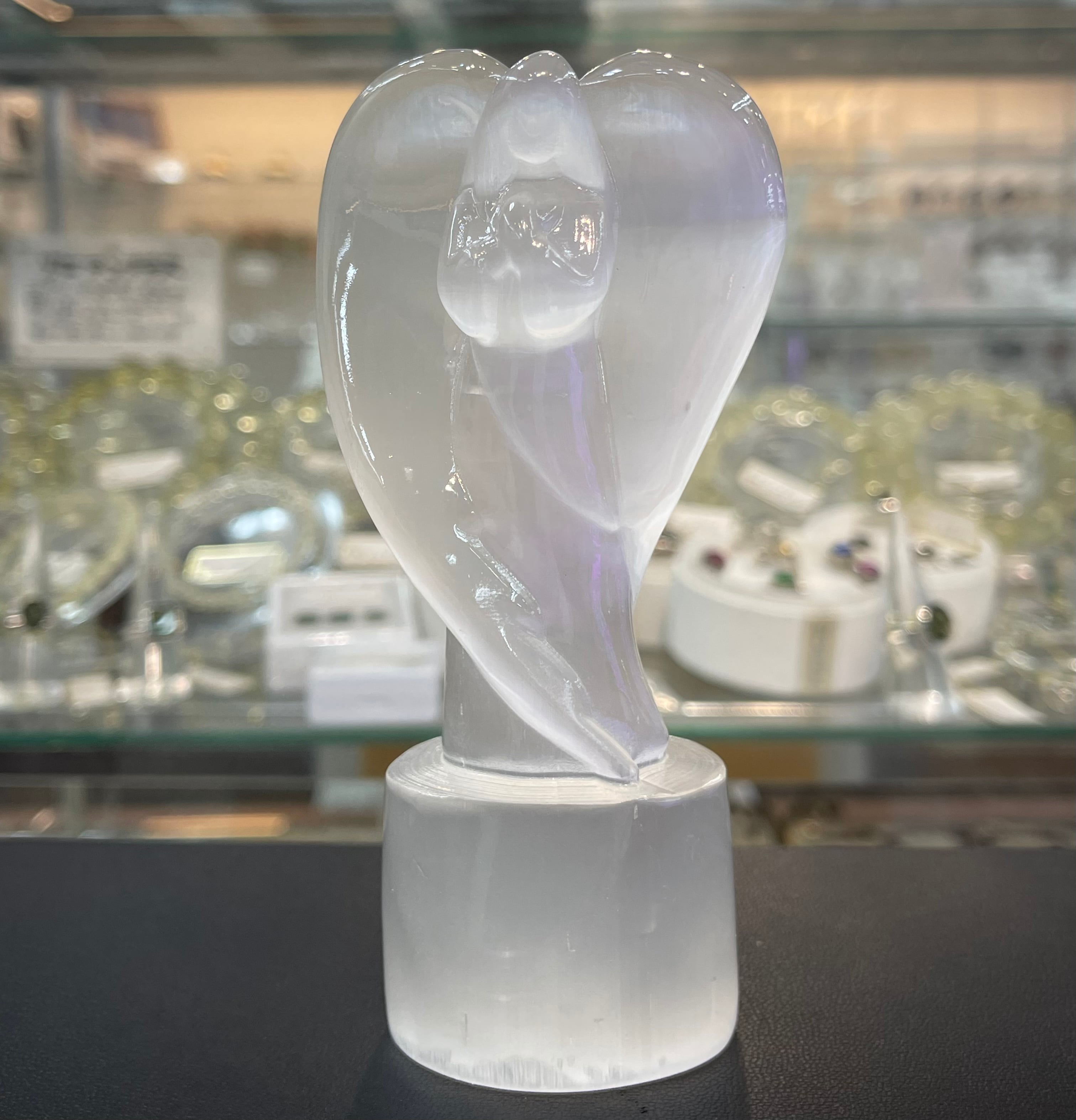 大きな!天然セレナイトエンジェル セレナイト天使 透石膏の天使 彫り物 彫刻