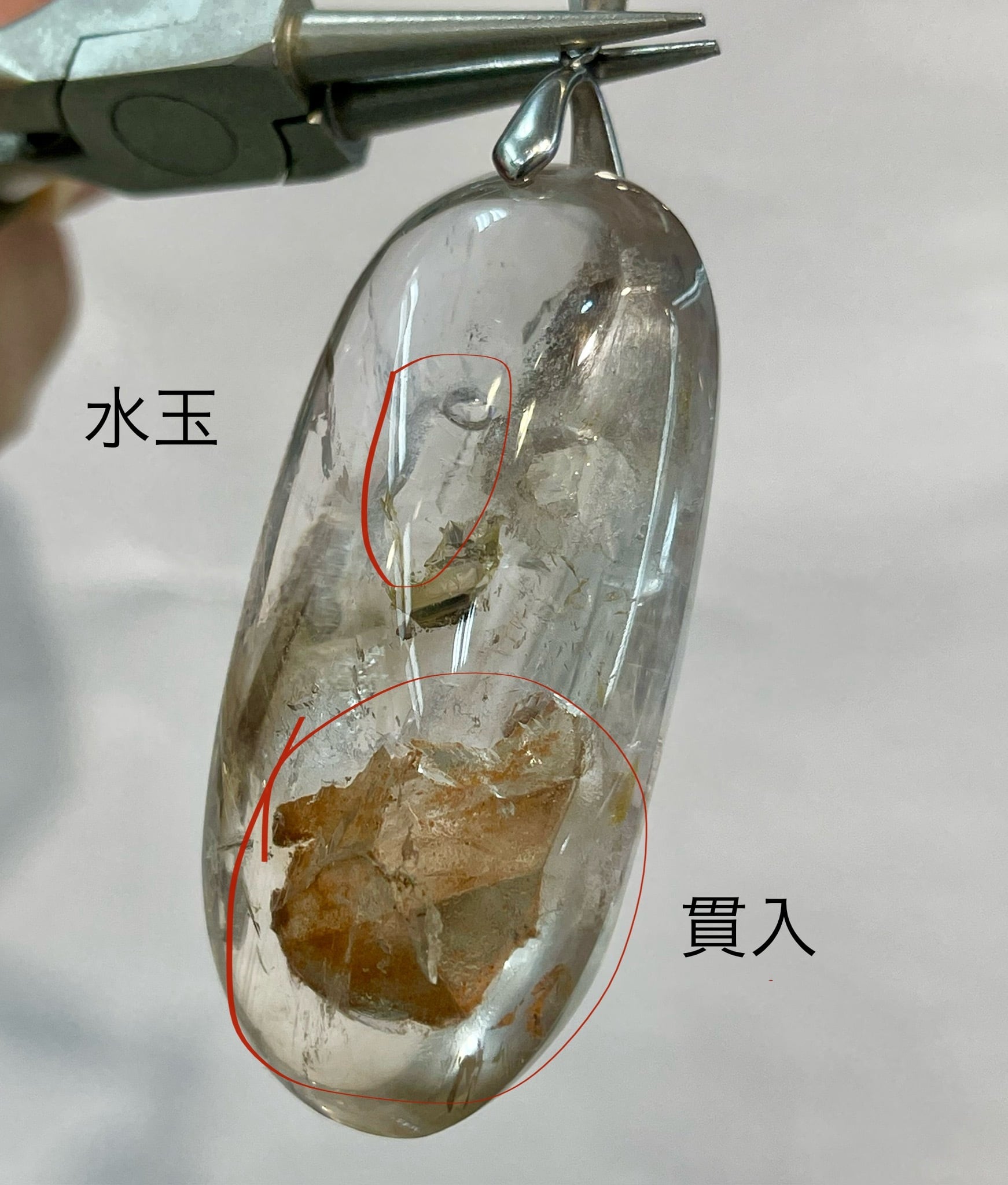 水晶の中でも強靭なパワーを持つのが水入り水晶と言われ、太古の水が閉じ込められたものは大変貴重で「ウォータードロップクォーツ」「ウォーターインクォーツ」と呼ばれ、特別視されています。窪みに閉じ込められたその水は、何千年前か何億年前のものだといわれております。