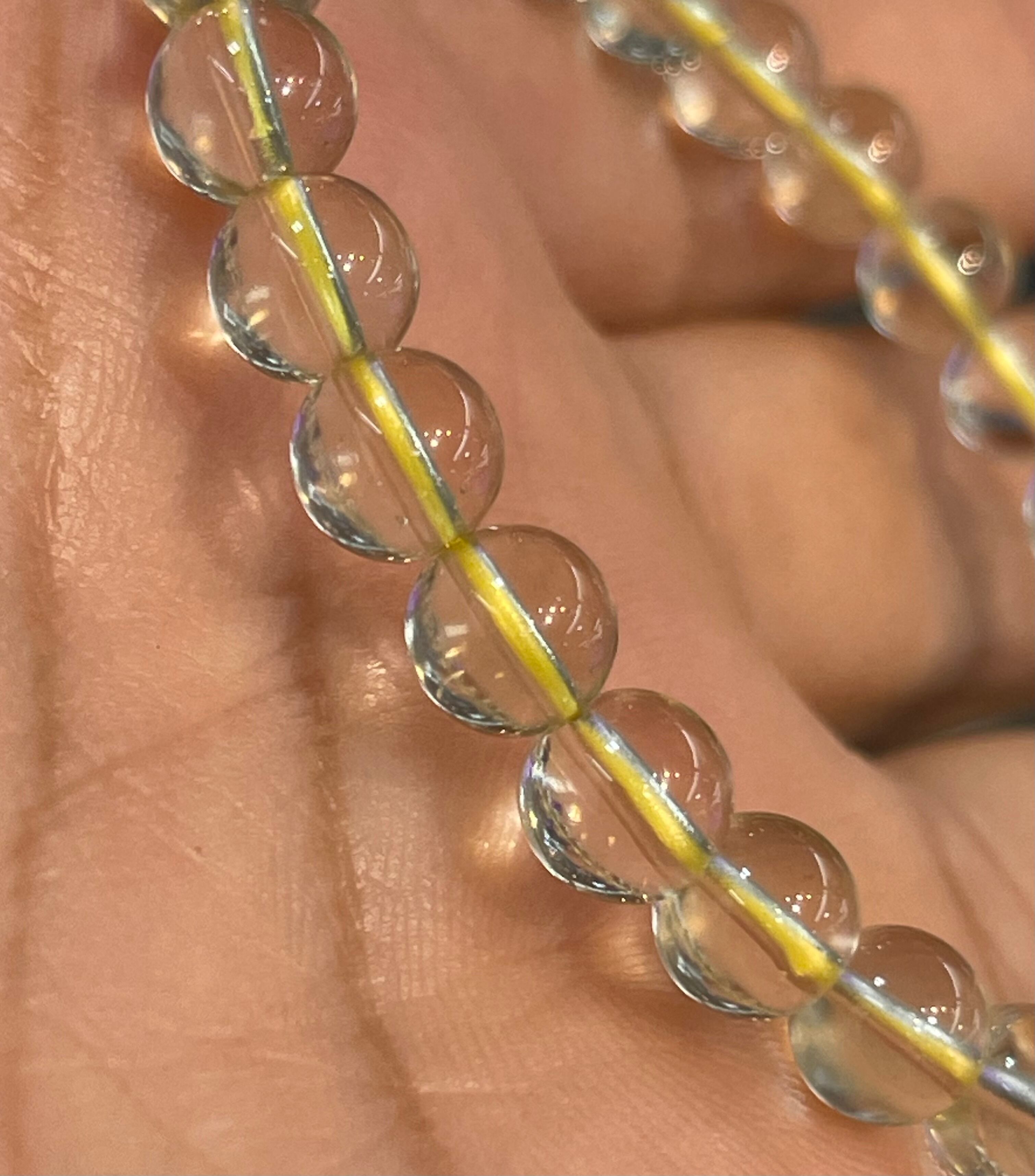 淡い黄色系が特徴であり、二酸化珪素(SiO2)の純度が98%で、黄緑、深緑、無色、乳白色等もあり気泡と内包物も良く含まれています。