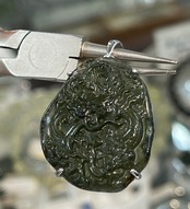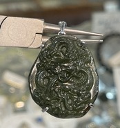 天然モルダバイト原石に熟練の彫刻師が丁寧に仕上げた龍彫りペンダントトップです。