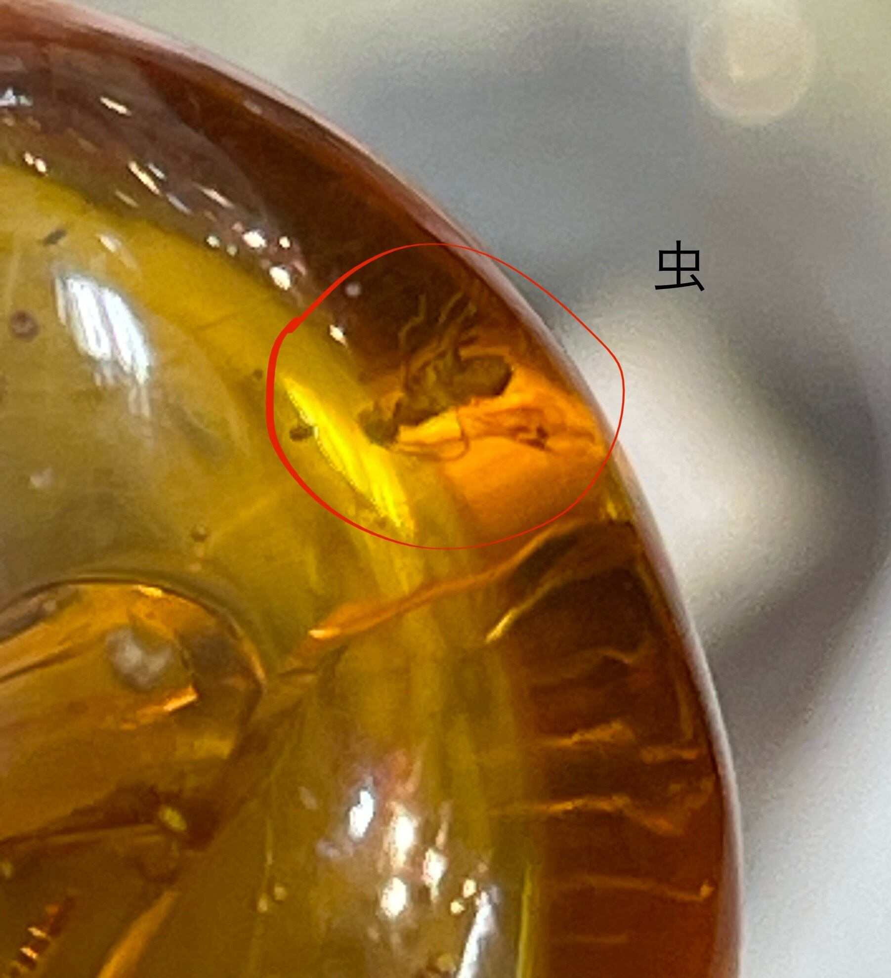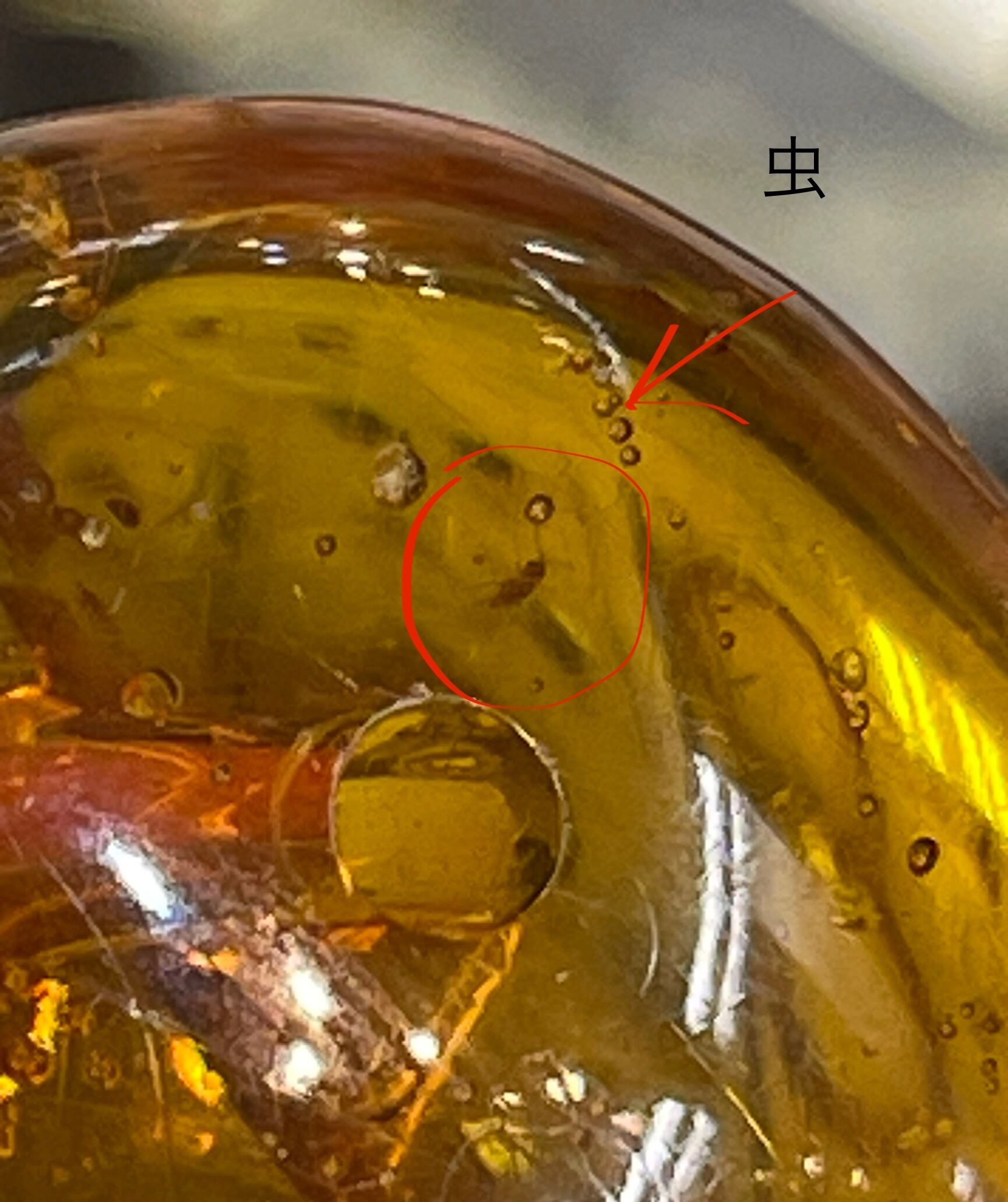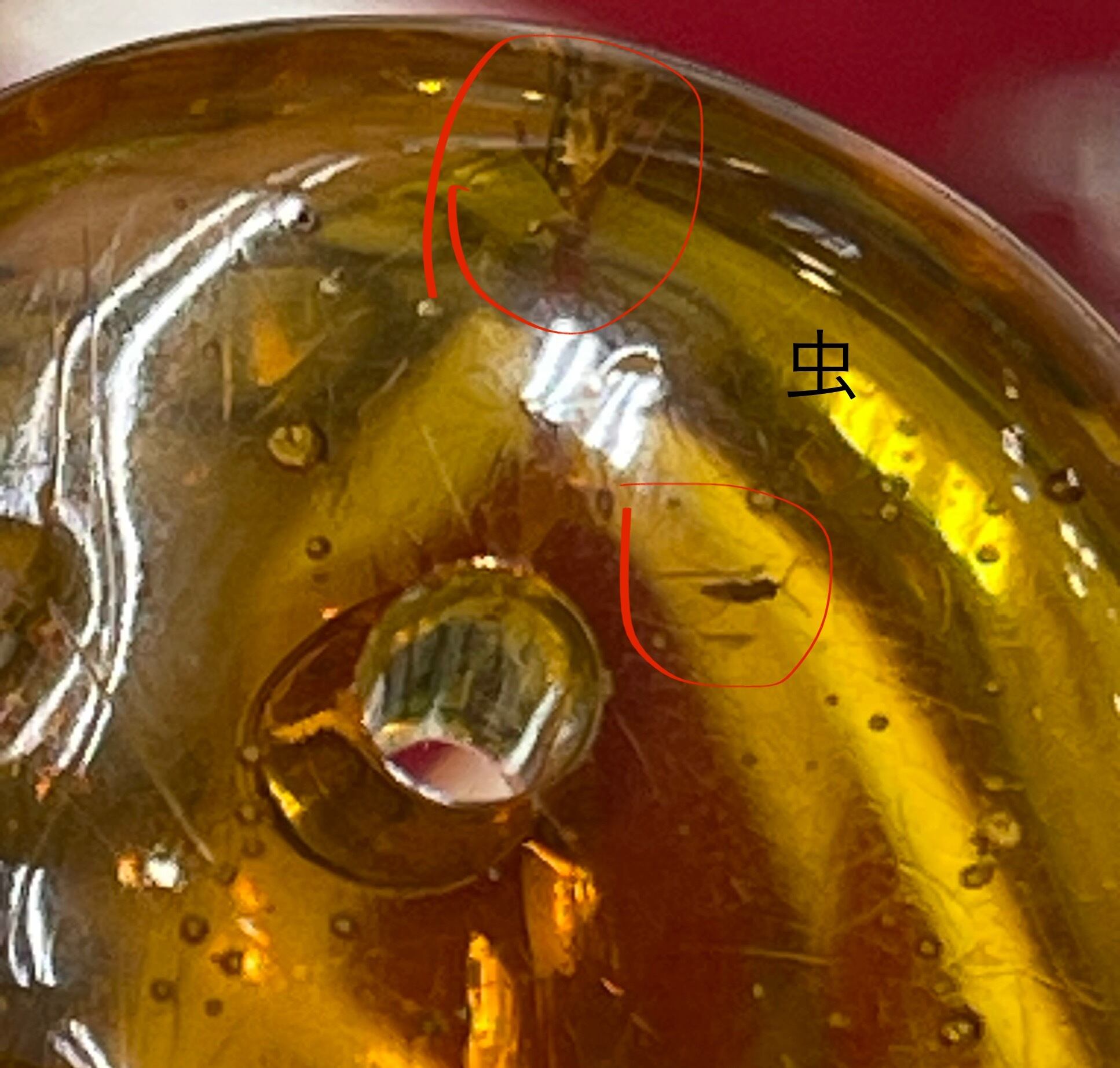 肉眼でも鮮明に見えるほど大きな虫が2匹閉じ込められています。