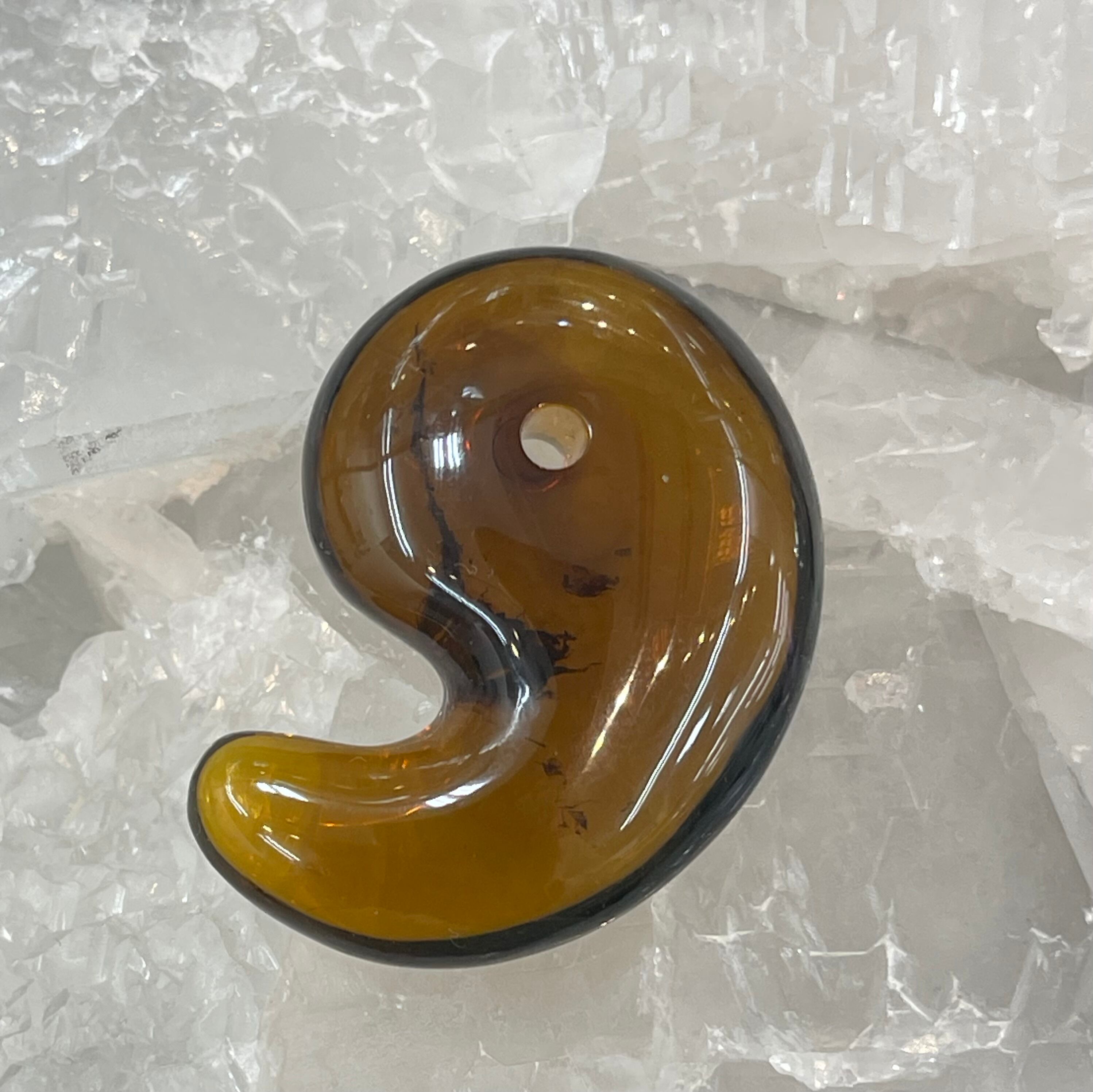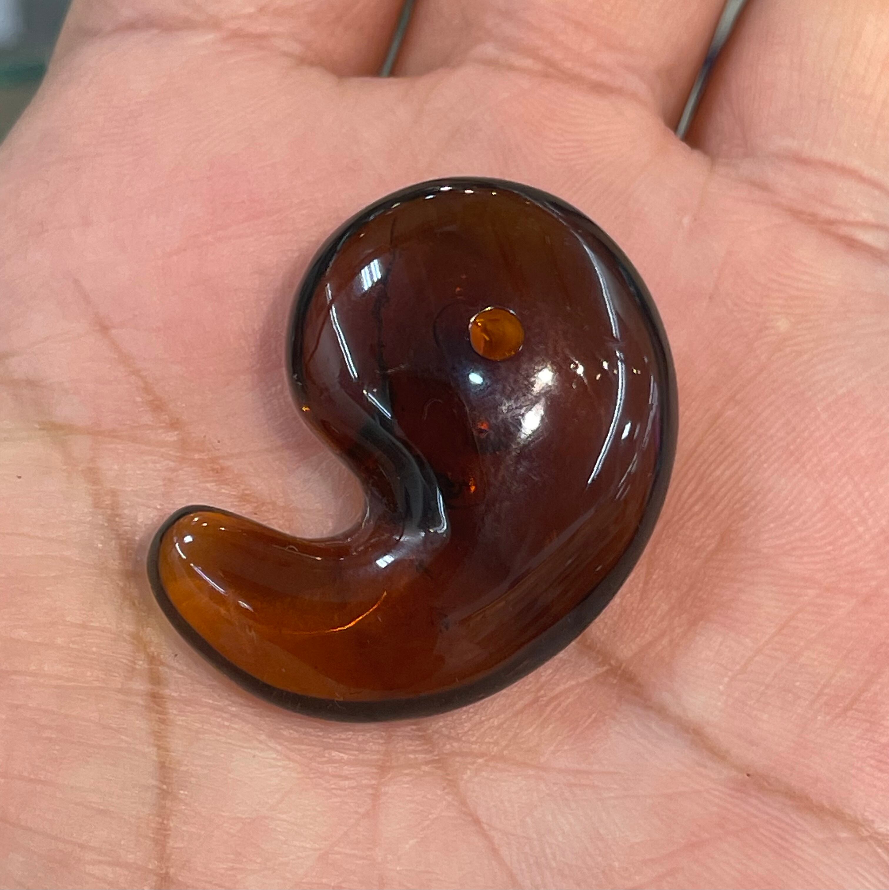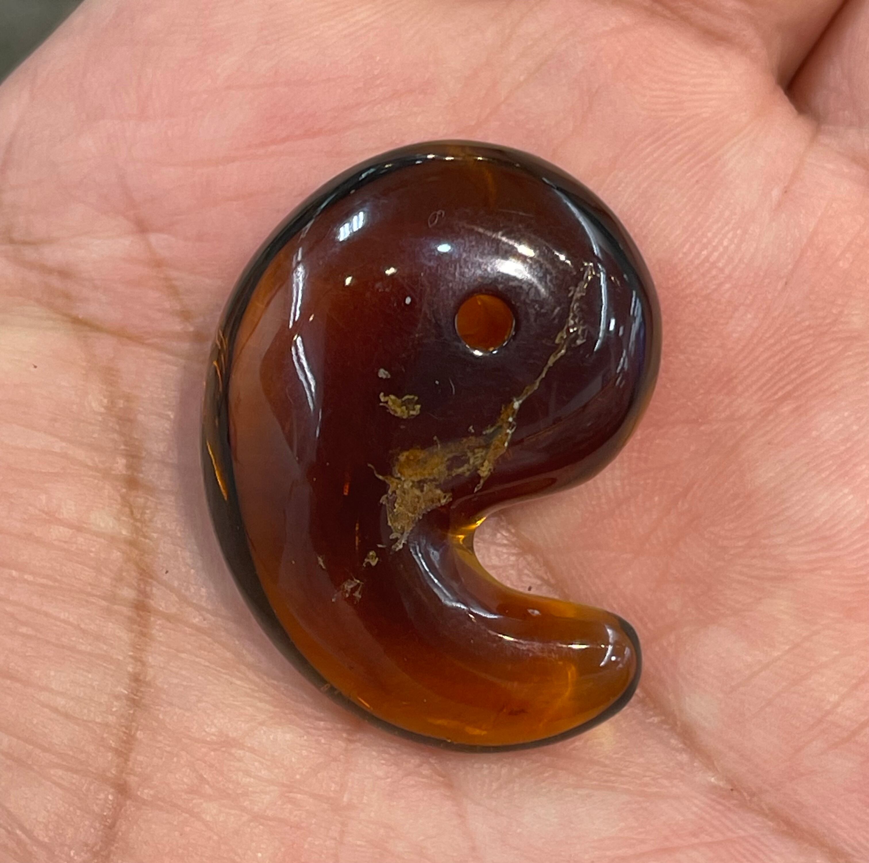 高品質 ドミニカ産 天然ブルーアンバー勾玉 手彫り ペンダントトップ