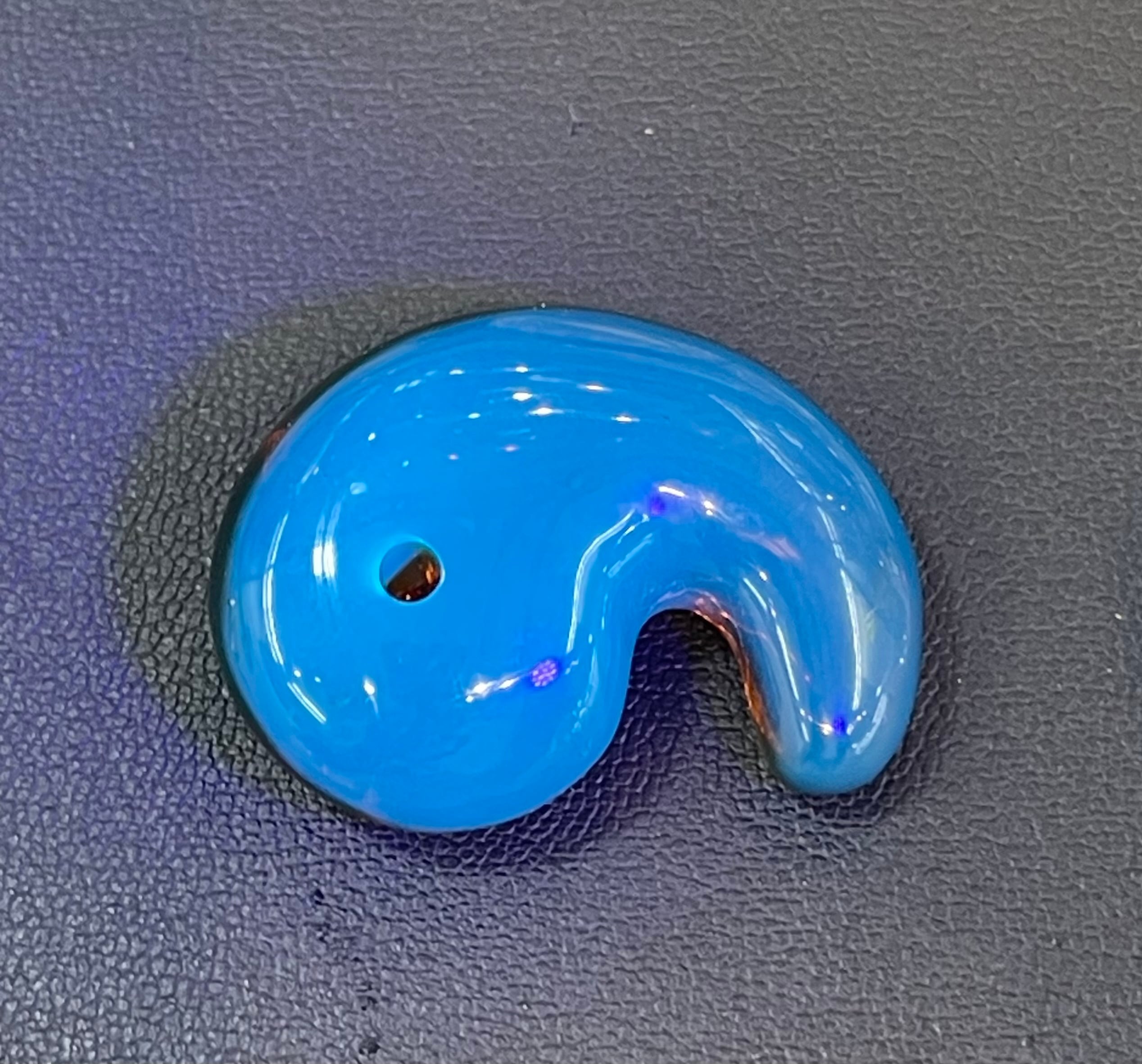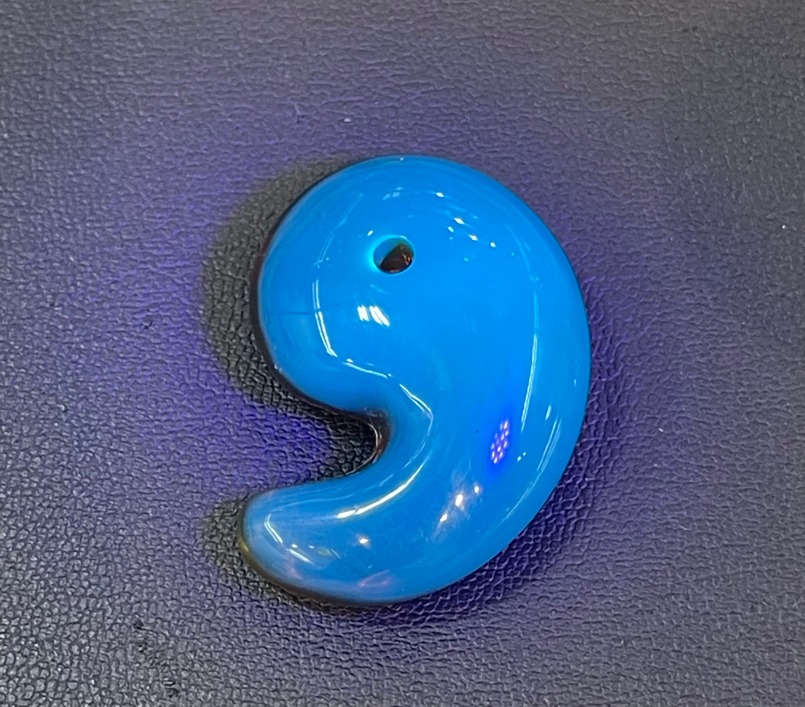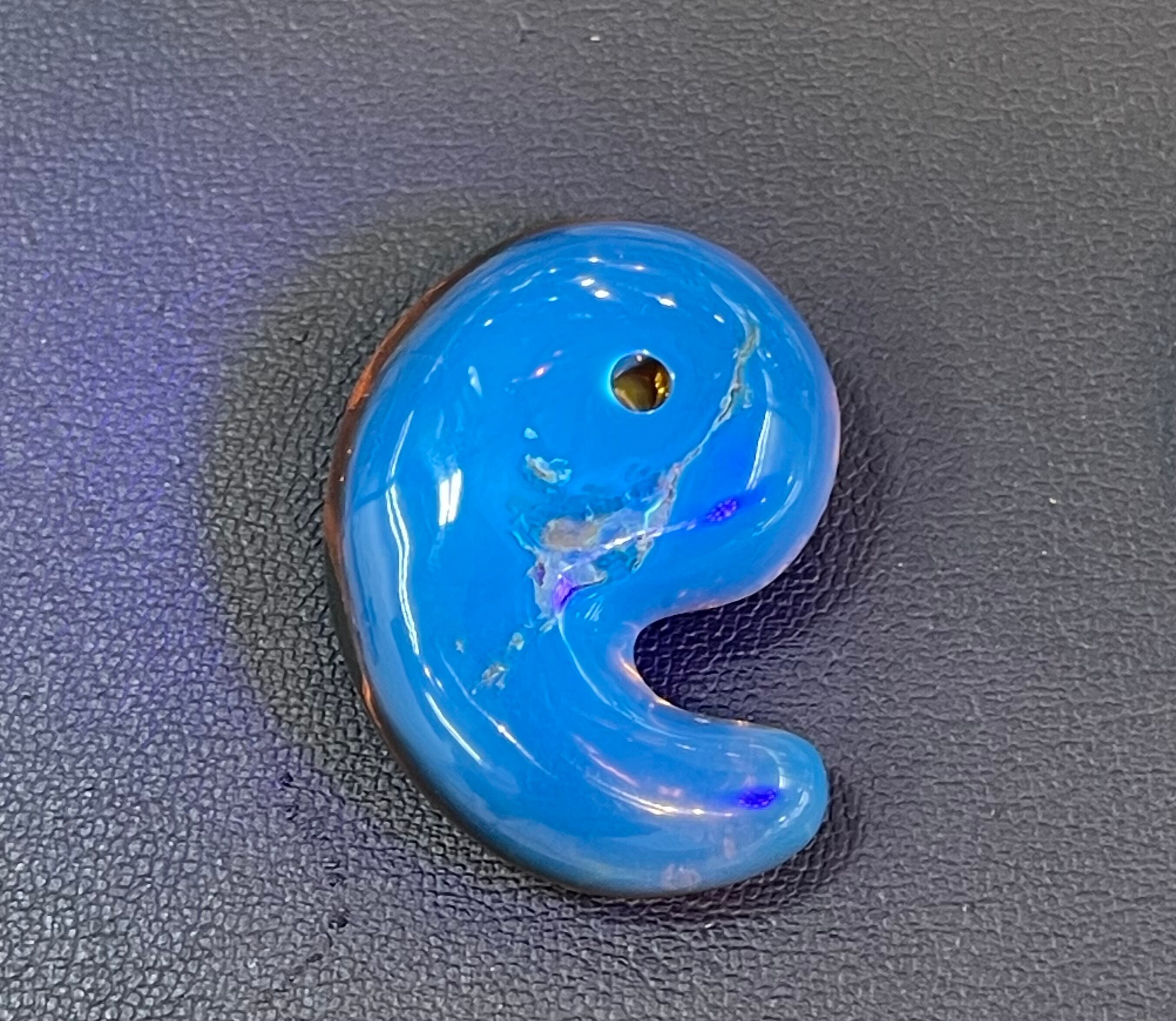 最高の発色!正真正銘のドミニカ共和国・サンピアゴ産、天然ブルーアンバー(青琥珀)勾玉です。大きな勾玉!
